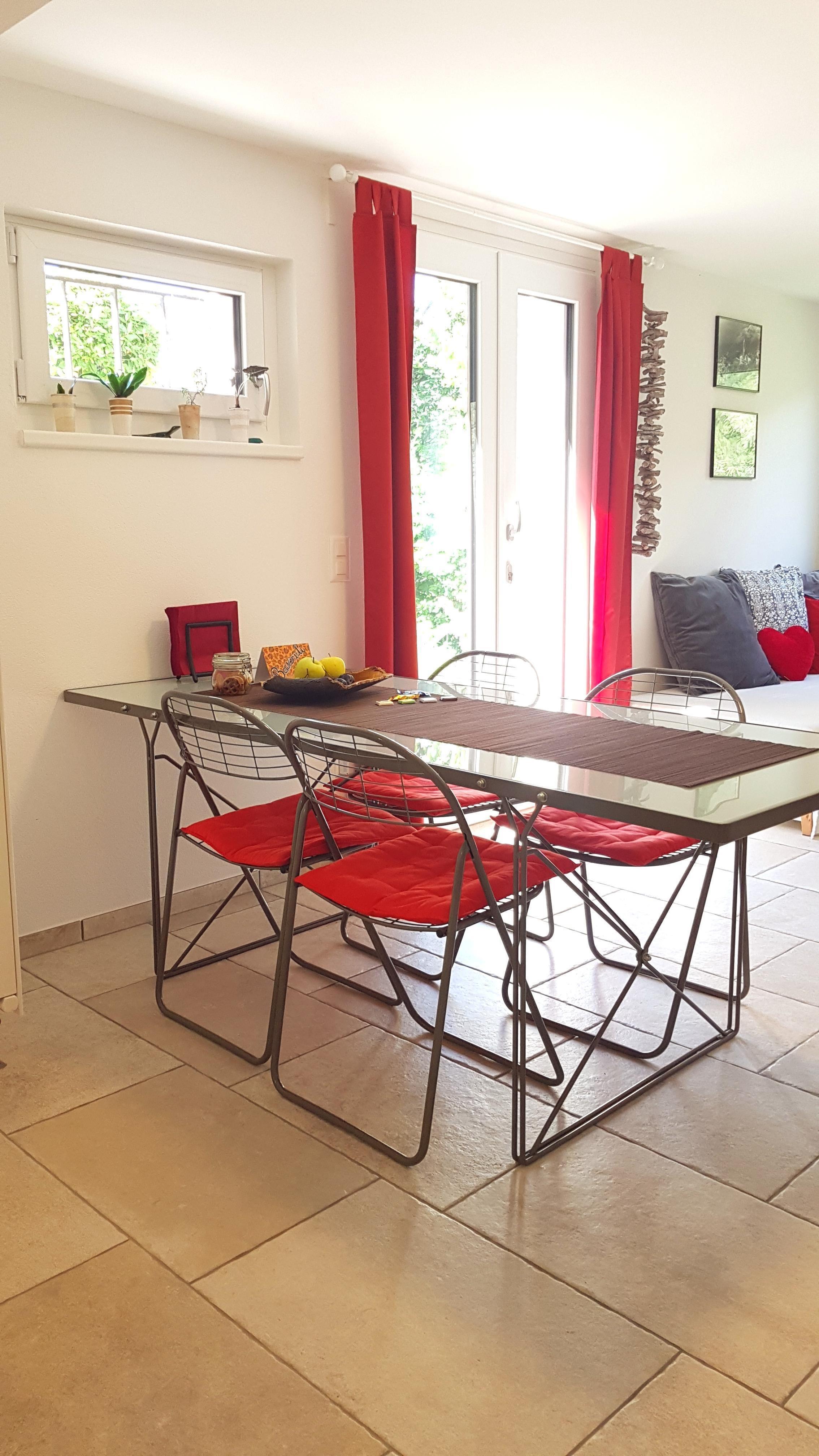 Outside, the flat opens onto a lovely space equipped with a coffee table, a large table for al fresco dining, a sunshade and two deck chairs. To complete the picture, there is a lawn in front with a public playground and a small house where dinners based on typical local dishes are occasionally organised. This outdoor area is ideal for those who wish to relax or enjoy convivial moments surrounded by nature.