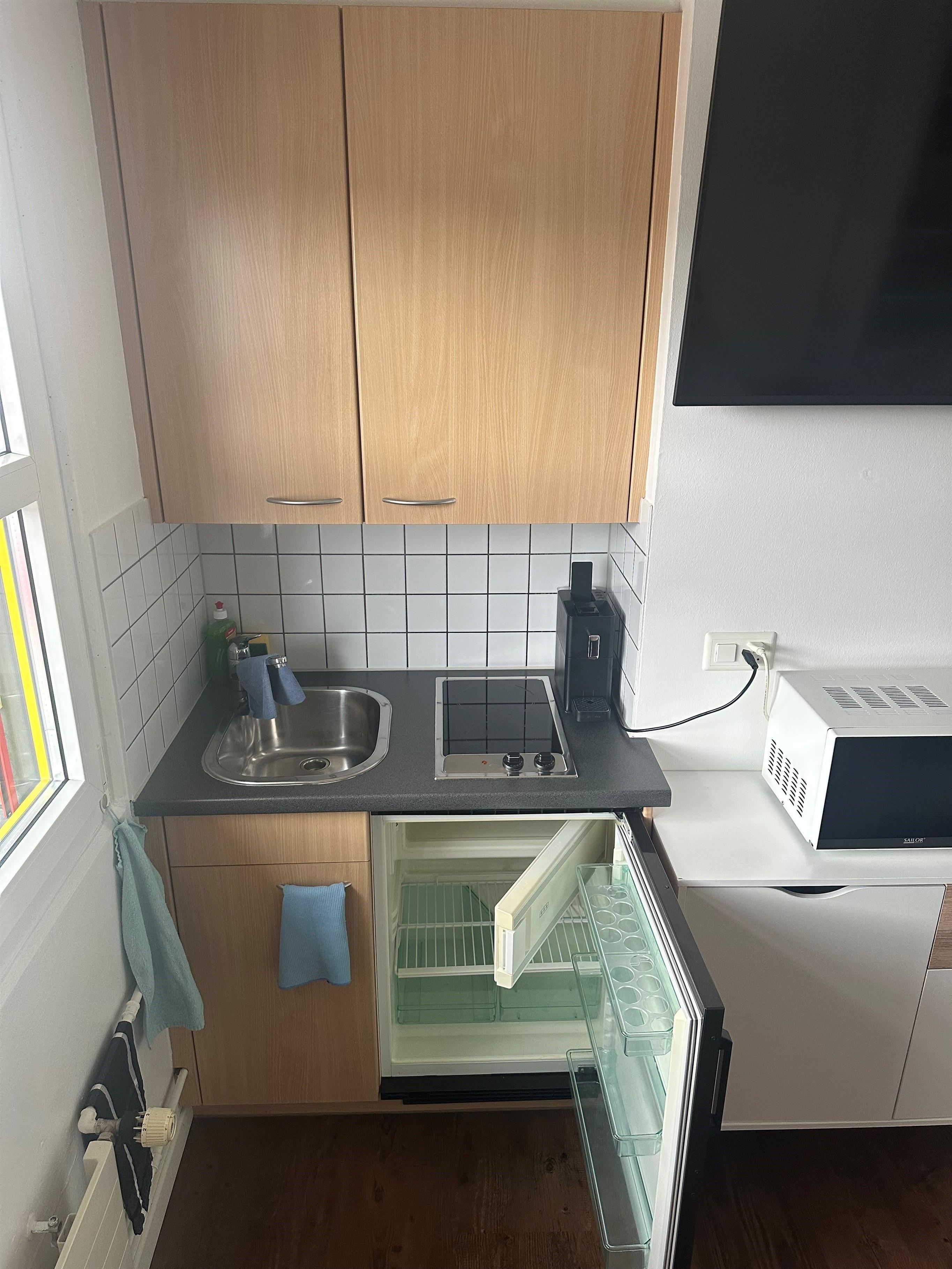 The interior of this studio has been carefully designed to meet the needs of a solo traveller. It has a 2-ring hob and a capsule coffee machine, allowing you to prepare a meal or a coffee at any time of the day. The washing machine and tumble dryer for sole use guarantee additional comfort for a longer stay.