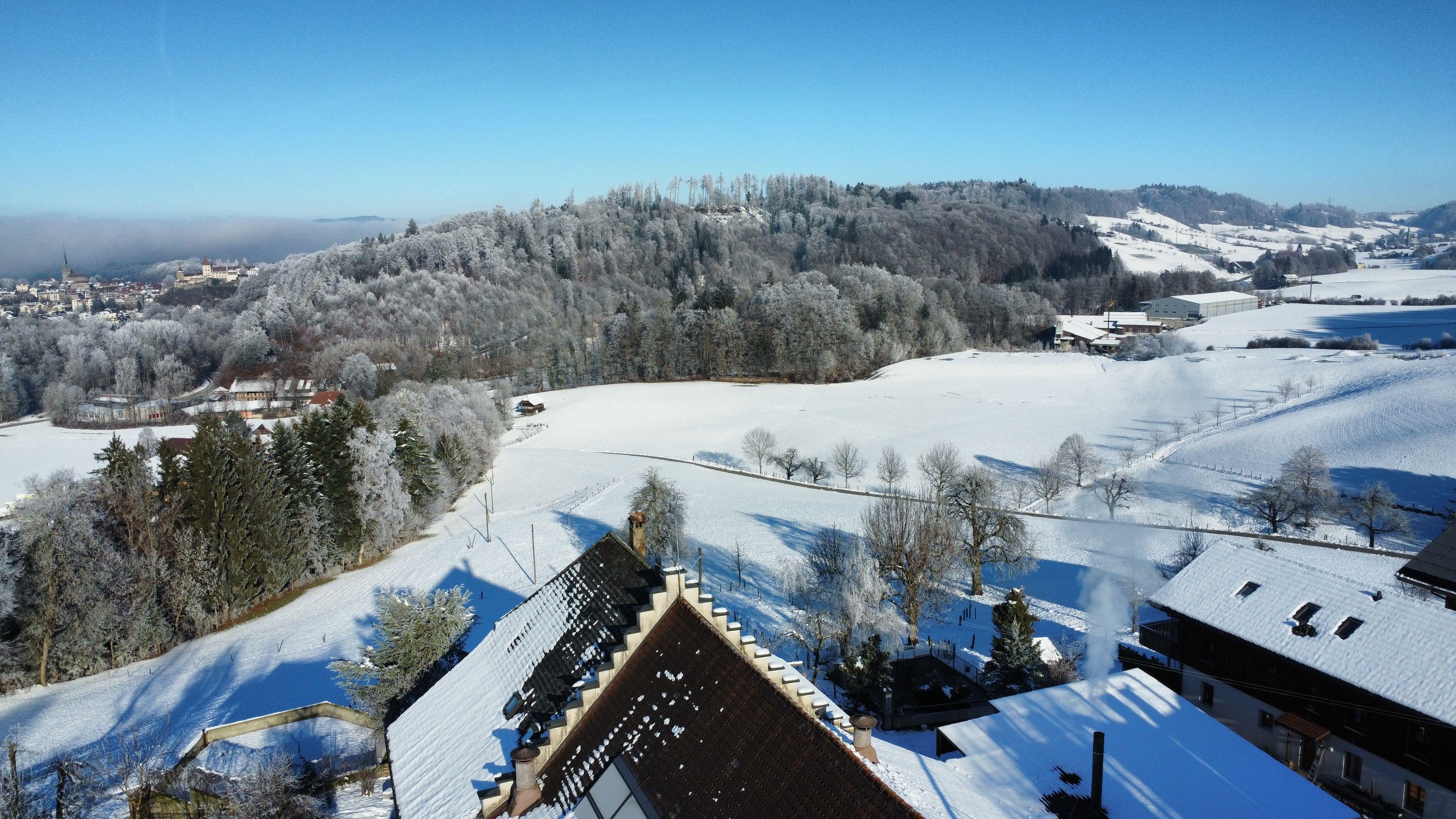 Discover the idyllic tranquillity and picturesque views of our 300-year-old sandstone farmhouse. Situated in a panoramic location, it offers an unrivalled view of the town of Burgdorf and the Jura mountains. Nestled in the traditional landscape, our farm offers a cosy 3½-room flat on the 2nd floor, perfect for a break in harmony with nature and the agricultural way of life.
