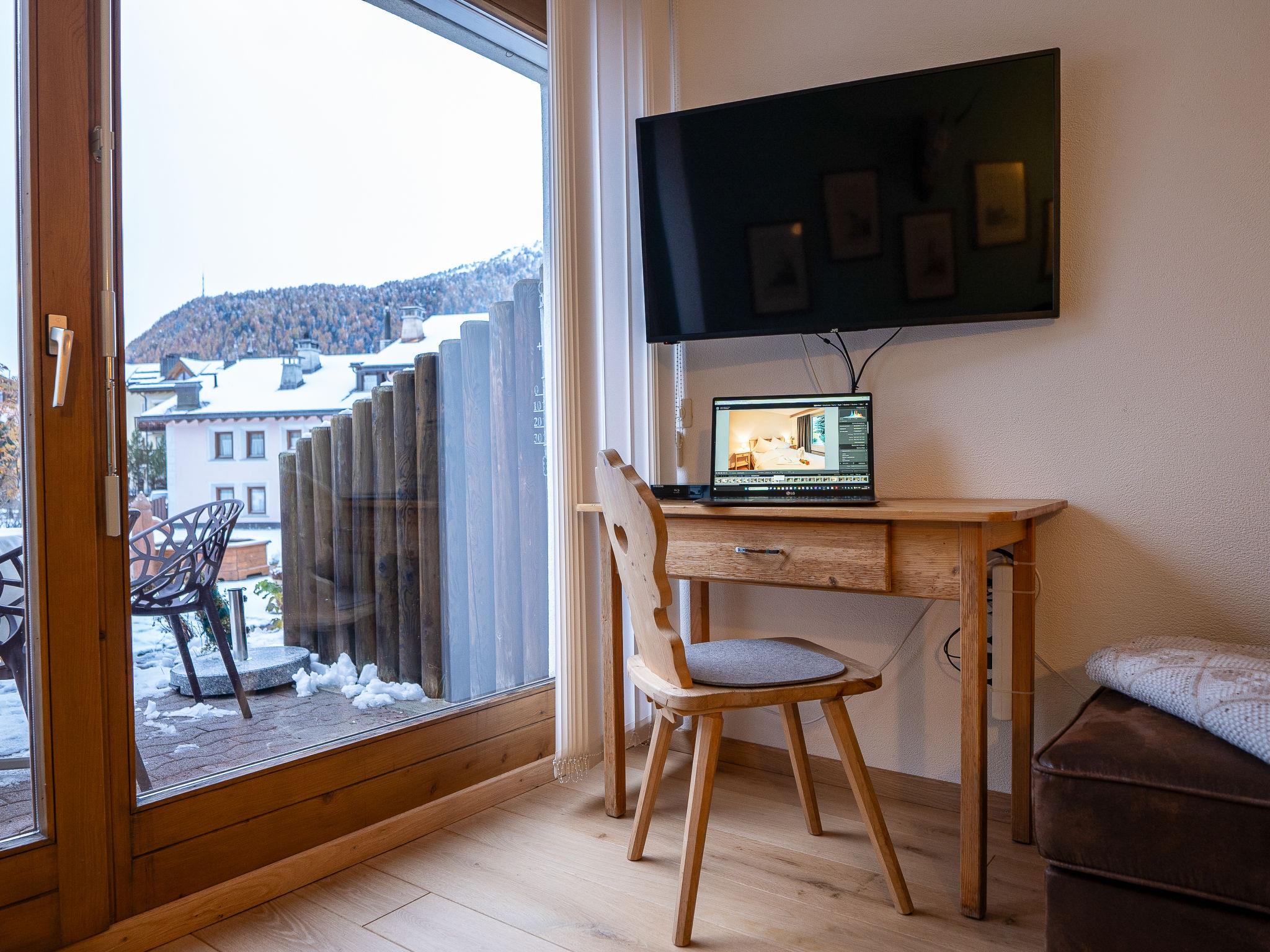 Celerina: Cosy apartment house "Chesa Narcissa", 3 storeys, surrounded by meadows and fields. On the outskirts, in the residential district, 900 m from the skiing area. For shared use: garden (not fenced) lawn and flowers. Planted inner courtyard. In the house: storage room for bicycles, storage room for skis, washing machine, tumble dryer (for shared use, extra). Communal covered parking at the house. Grocery, supermarket 350 m, restaurant 50 m, bakery 700 m, bus stop 150 m, railway station 750 m, indoor swimming pool 5.4 km. Golf course (18 hole) 2.5 km, sailing school 10 km, walking paths from the house 50 m, mountain railway 900 m, slopes, ski rental 900 m, ski bus stop 150 m, ski school, children's ski school 850 m, cross country ski track 200 m, ice rink 700 m. Nearby attractions: Olympia Bob Run & Museum, Kirche San Gian. Well-known ski regions can easily be reached: Corviglia - Marguns 900 m, Corvatsch 10 km, Diavolezza-Lagalb 17 km. Well-known lakes can easily be reached: Stazersee 5 km, St. Moritzersee 3.2 km, Silvaplanasee 4.5 km. Hiking paths: Corviglia - Marguns, Muottas Muragl, Stazerwald & Stazersee. Please note: no lift.