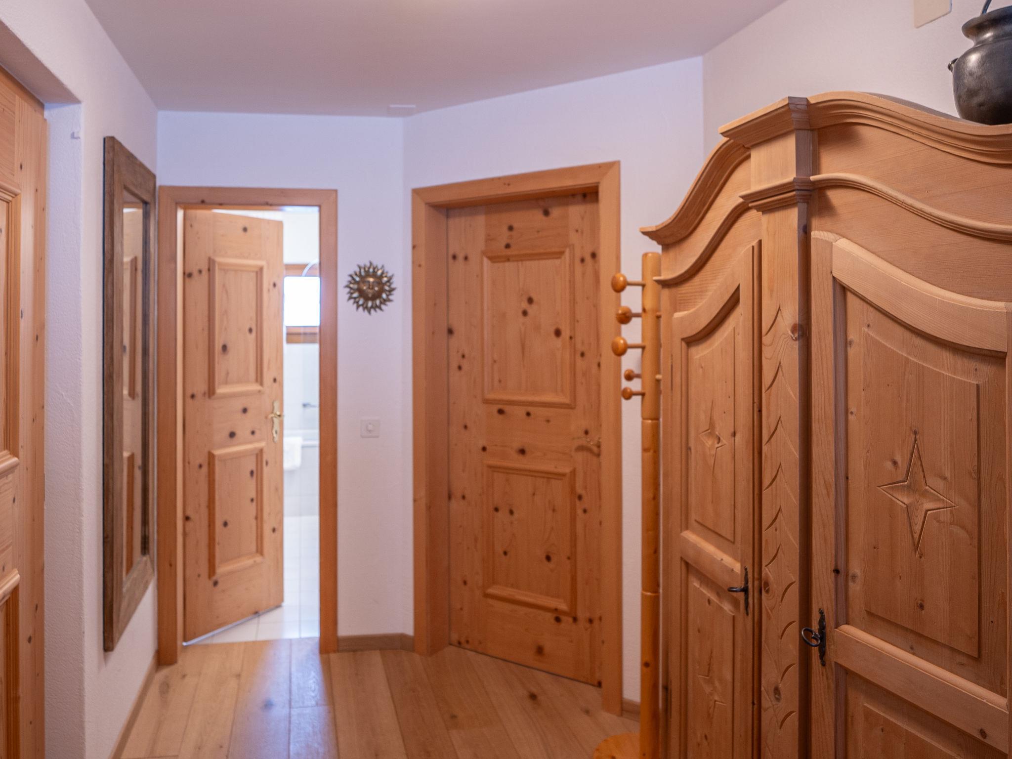 "Chesa Narcissa F4", 3-room apartment 60 m2, on the upper ground floor. Cosy and wooden furniture furnishings: living/dining room with TV (flat screen). Exit to the patio. 1 double bedroom with 1 double bed (1 x 180 cm, length 200 cm). 1 children's room with 1 bed (90 cm, length 200 cm). Small kitchen (oven, dishwasher, 4 ceramic glass hob hotplates, toaster, kettle, electric coffee machine, Capsules for coffee machine (Nespresso) extra, raclette grill, fondue Set (cheese)). Bath/WC. Heating. Parquet floors. Beautiful view of the mountains and the countryside. Facilities: hair dryer. Internet (WiFi, free). Garage space n 76 on the property (1 car), height 220 cm, width 230 cm. Please note: apartment courtyard side. Non-smokers only, non-smoking house. No lift.