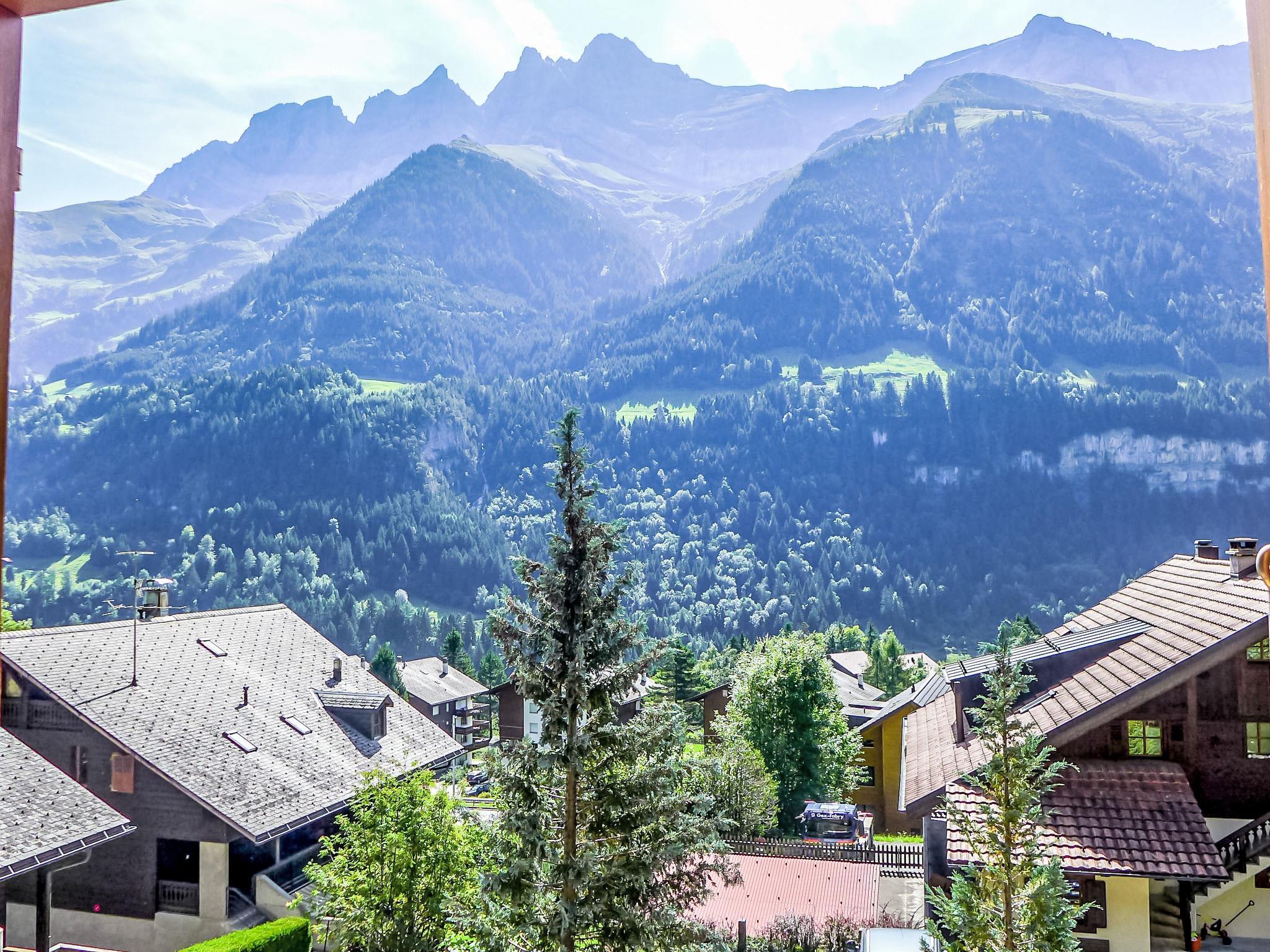 "La Tour d'Antheme", 3-room apartment 90 m2 on 2nd floor. Object suitable for 5 adults + 2 children. Spacious and bright, comfortable and tasteful furnishings: living/dining room with 1 sofabed (140 cm, length 200 cm), open-hearth fireplace (only for decoration), TV, DVD and DVD collection available. Exit to the balcony. 1 double bedroom with 1 double bed (2 x 90 cm, length 190 cm). 1 room with 1 bed (80 cm, length 190 cm), 1 x 2 bunk beds (80 cm, length 190 cm). Exit to the patio. Large, open kitchen (4 hot plates, oven, dishwasher, microwave, electric coffee machine, raclette grill, fondue Set (chinoise, cheese)) with dining table. Bath/WC, shower/WC. Electric heating. Balcony, south-east facing position, small patio, south-west facing position. Balcony furniture, barbecue (portable). Very beautiful view of the mountains, the countryside and the resort. Facilities: Internet (WiFi, free). Please note: non-smokers only.