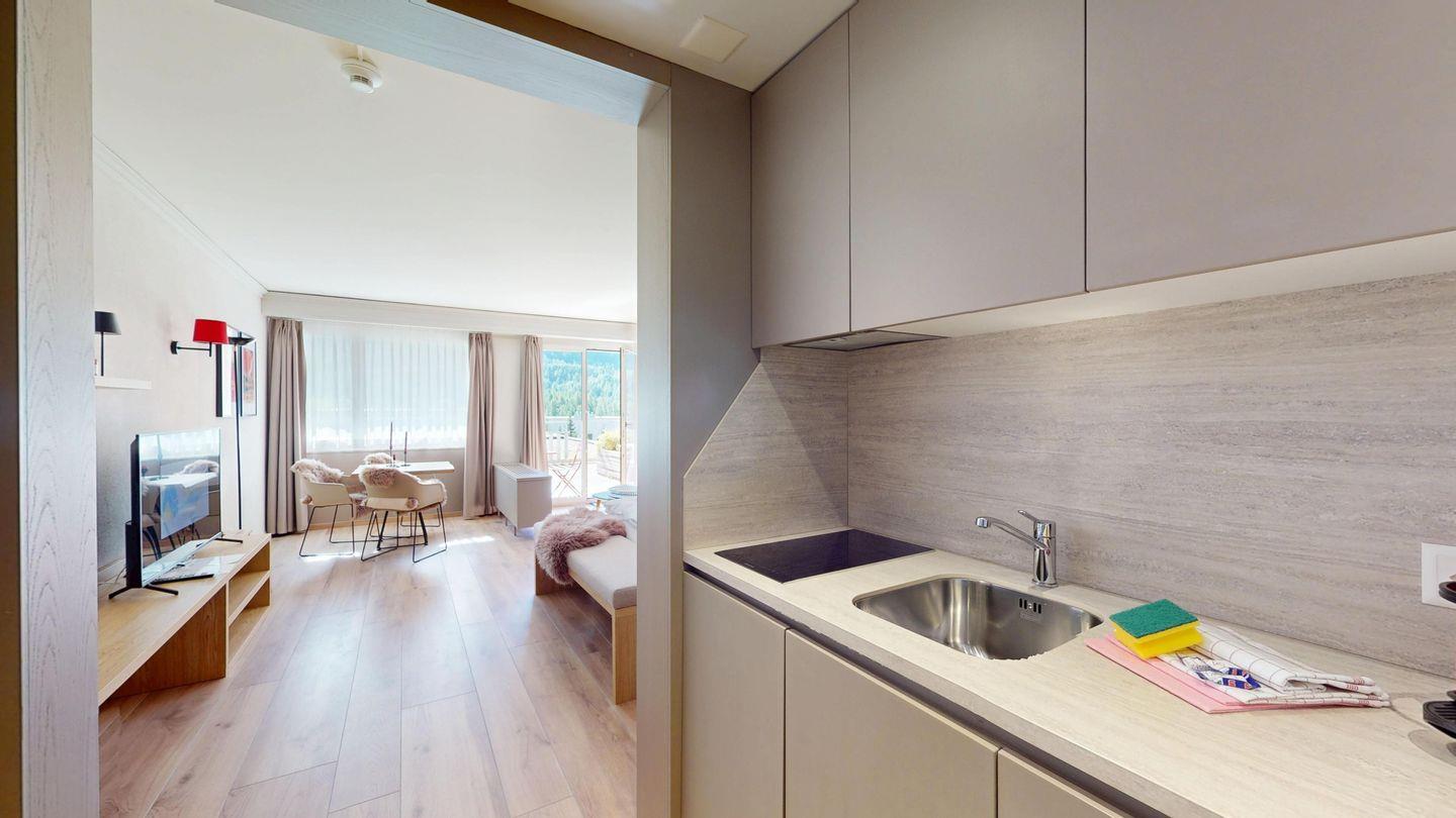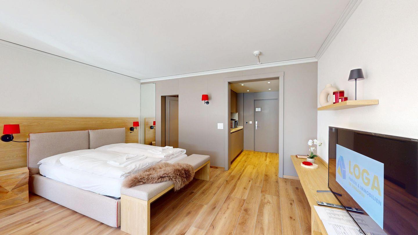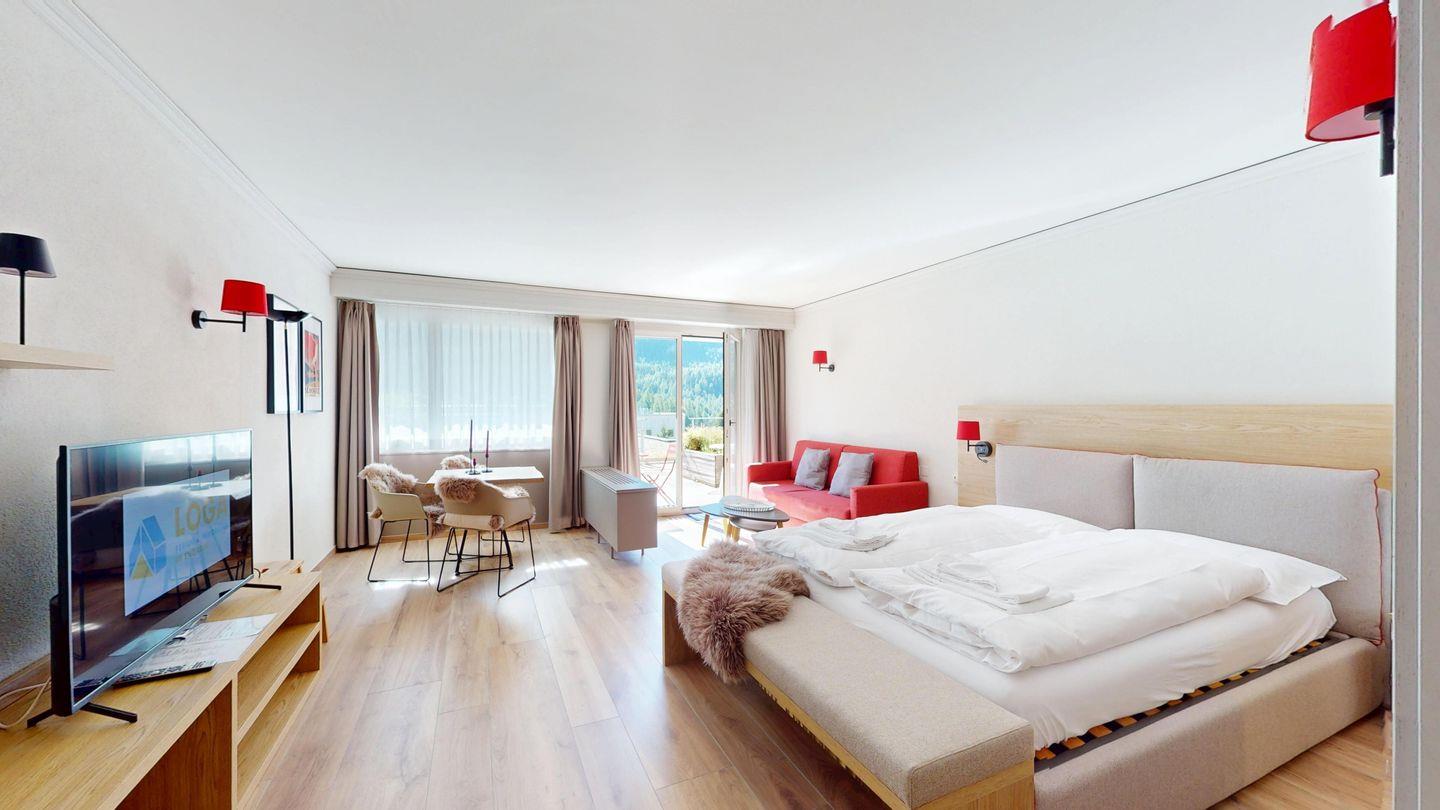 Das Studio 206 liegt im Haus A des Hotel-Europa-Komplexes und ist direkt mit dem Hotel verbunden. Dadurch haben Sie auch Zugang zu den Einrichtungen des Hotels. Direkt vor dem Haus beginnen Langlaufloipen und Wanderwege. Die Haltestellen des öffentlichen Verkehrs, mit direkter Anbindung an die Bergbahnen, erreichen Sie bequem zu Fuss.