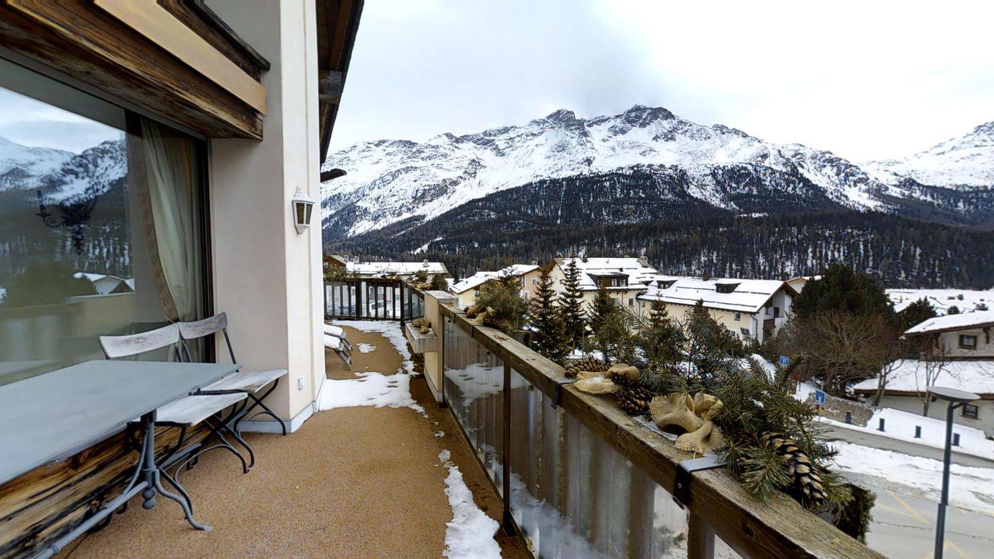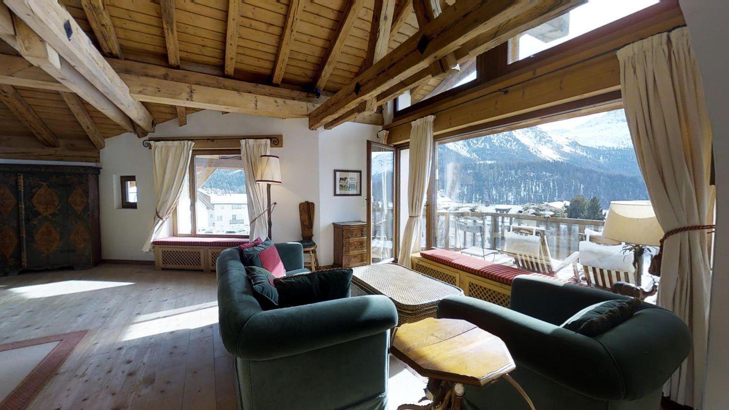 Sehr grosszügige und geschmackvoll eingerichtete 5-Zimmer-Maisonettewohnung mit grossem Balkon und imposantem Panoramablick über den Champfèrer- und Silvaplanersee.
