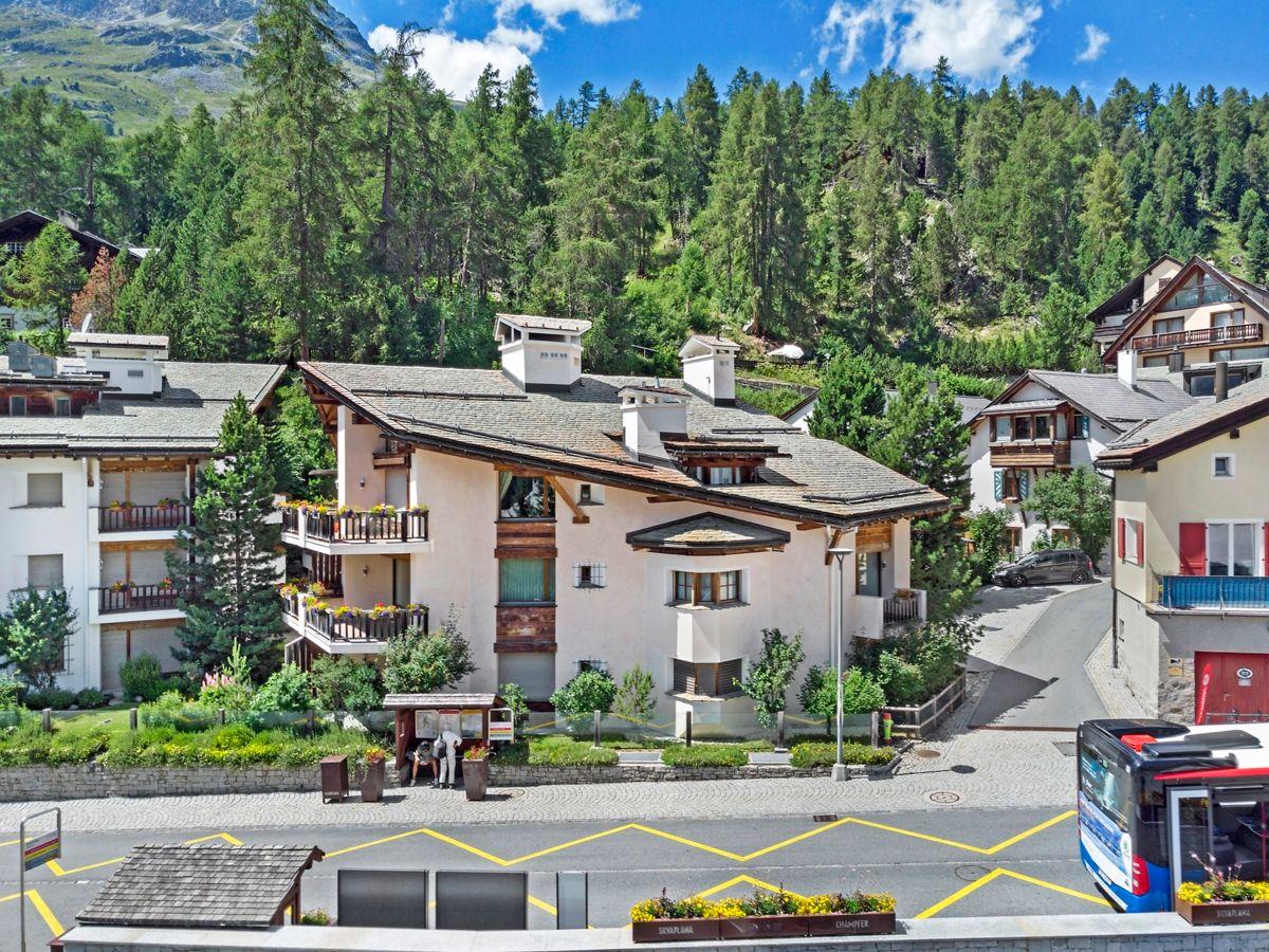 Das Haus selbst befindet sich am Ortseingang von Champfèr und hat den ganzen Tag optimale Sonneneinstrahlung.