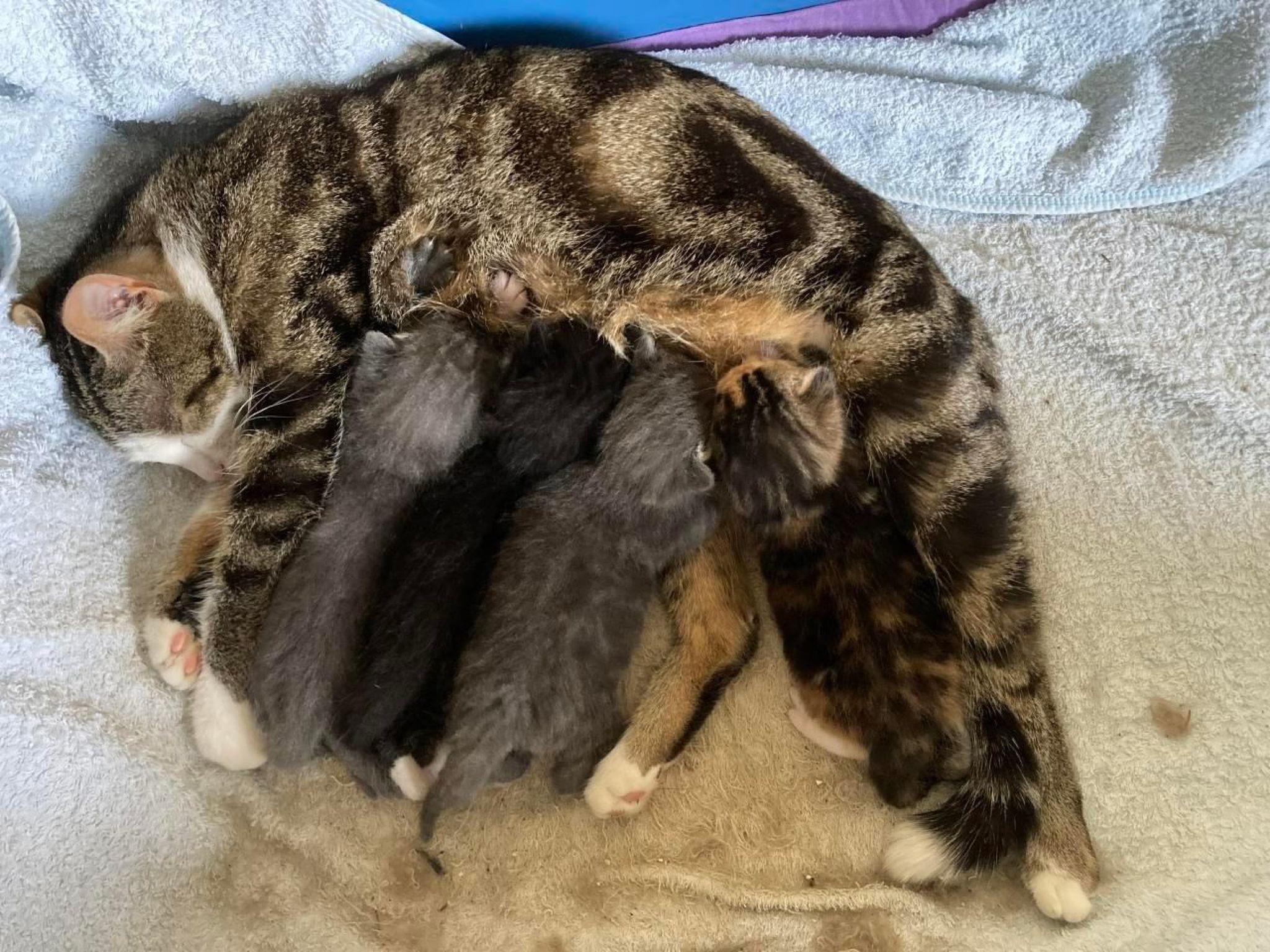 On our farm we keep suckler cows with their calves, a bull, horses, some chickens, a dog and cats.