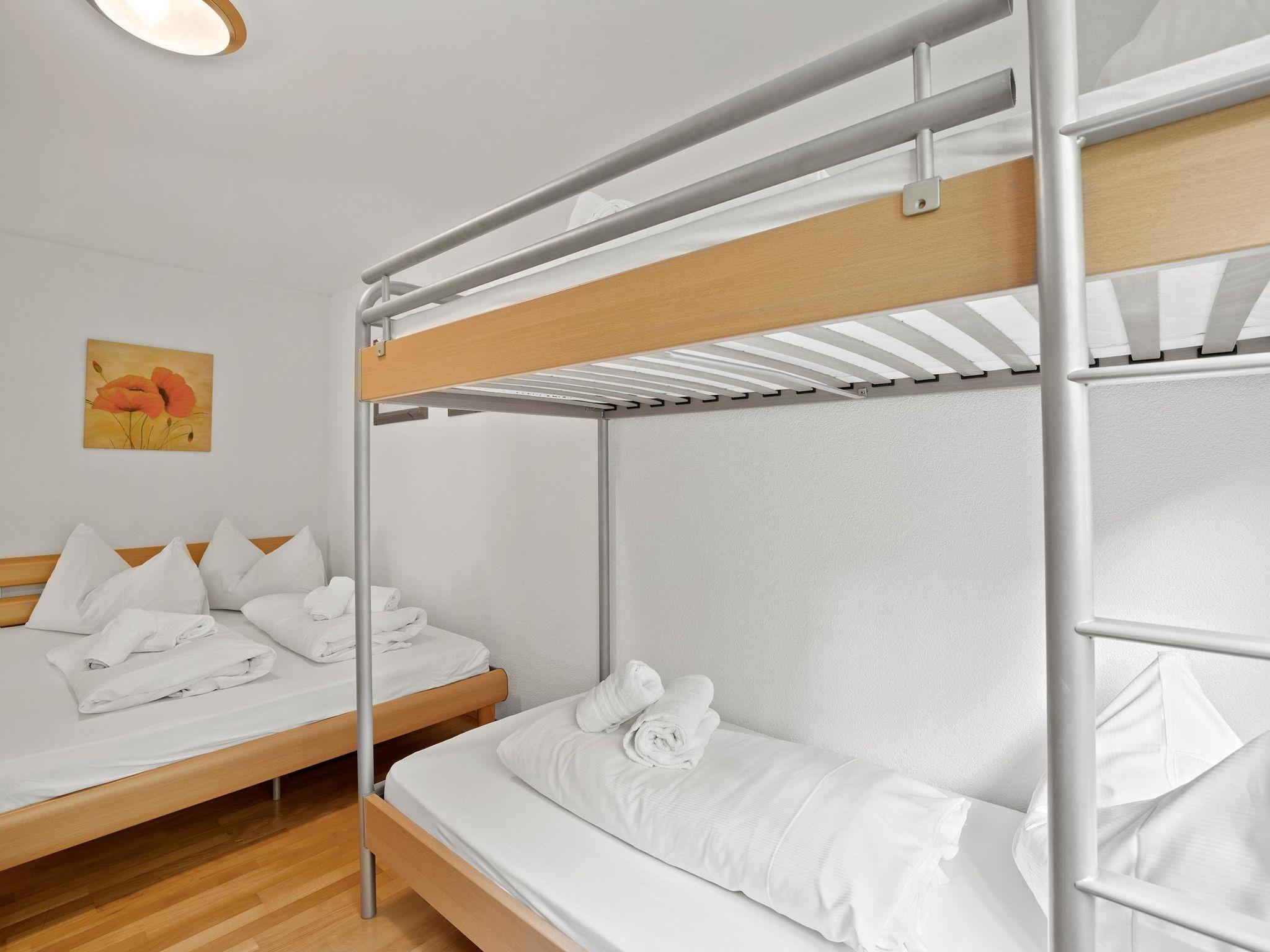 1st floor / elevator / WiFi yes / 1 room with double bed / 1 room with bunk bed and a small double bed / 1 bathroom with bathtub / 1 separate toilet The apartment is located directly behind the shopping facility "Coop" and a few minutes' walk from Migros, lift stations and the sports shop. (Holiday apartment Raber is located in the same building but is only available for rent in the winter months)
