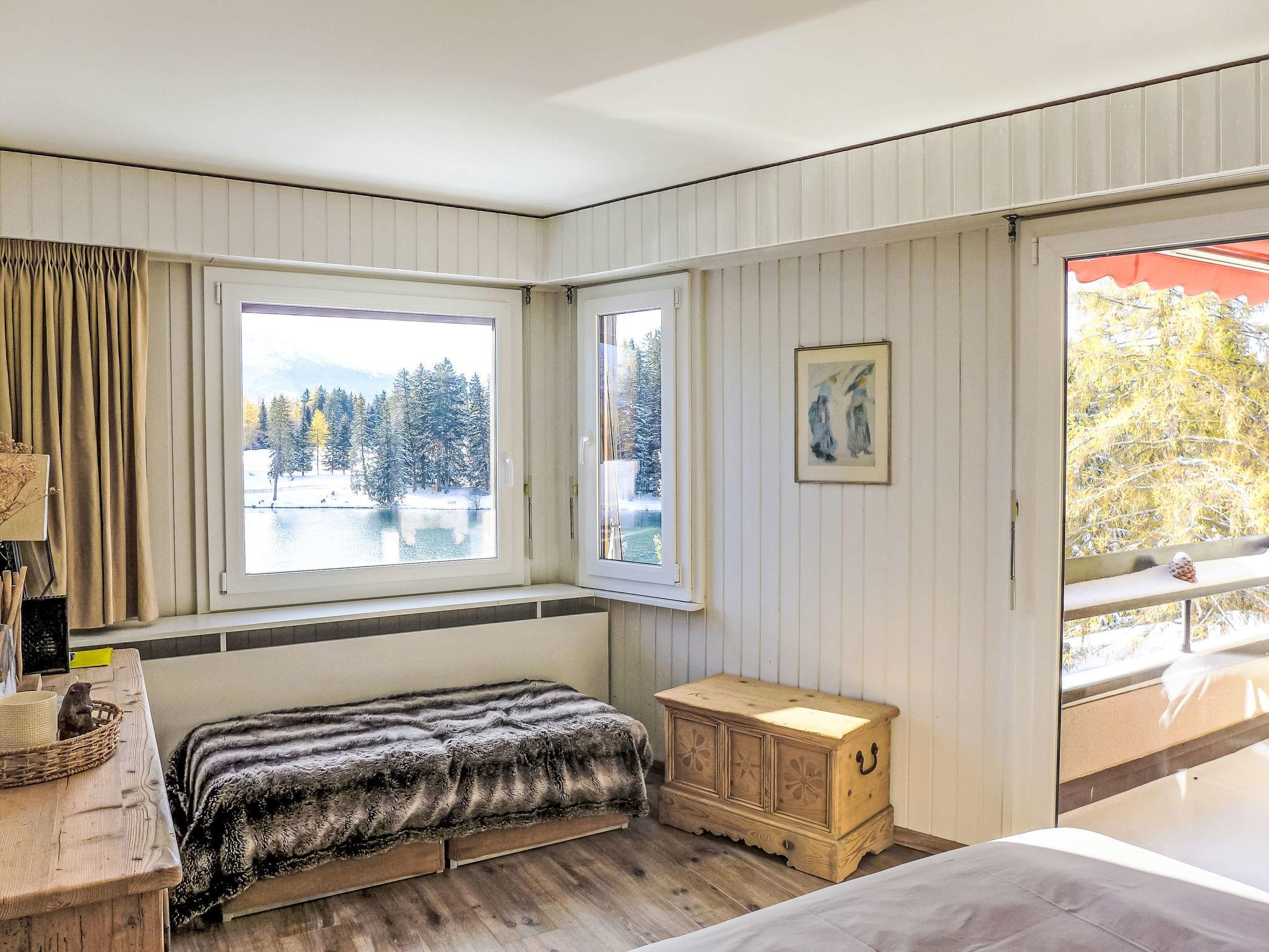 The building is on a sloping site. The floors are considered as levels and are counted from the ground. Very beautiful, cosy, comfortable residence "Golf Bellerive", built in 1973. In the district of Moubra, 1 km from the centre, in a sunny position, 20 m from the lake, 1.4 km from the skiing area, south facing position. In the complex: lift, storage room for skis, central heating system, washing machine, tumble dryer (for shared use, extra), drying room. Parking (limited number of spaces). Shop 1 km, supermarket 1.5 km, restaurant 400 m, bakery 1.2 km, bus stop "Sur Moubra" 10 m, railway station "Funiculaire Montana Gare" 2.1 km, grass beach 400 m, bathing lake "Moubra" 20 m. Golf course (18 hole) 2 km, tennis, indoor tennis centre 200 m, riding stable 1.1 km, skisport facilities 1.4 km, cross country ski track 400 m, ice rink 1.2 km. Well-known lakes can easily be reached: Lac Grenon 1 km, Etang Long 1.2 km. Please note: ski bus (free of charge).