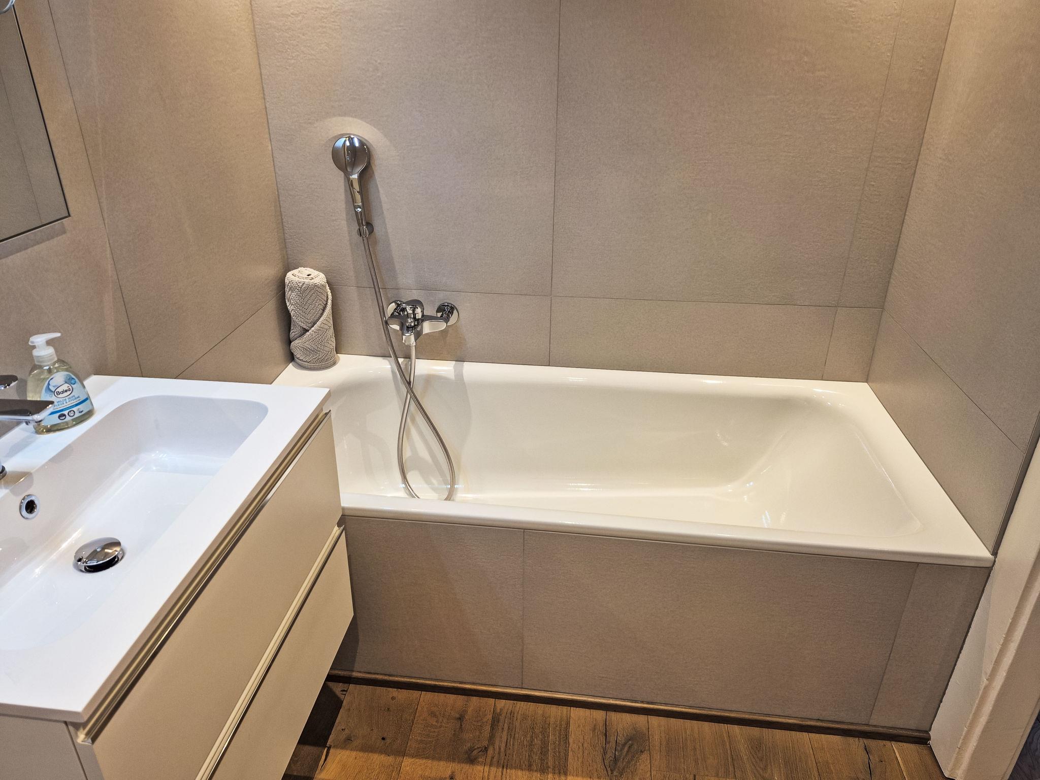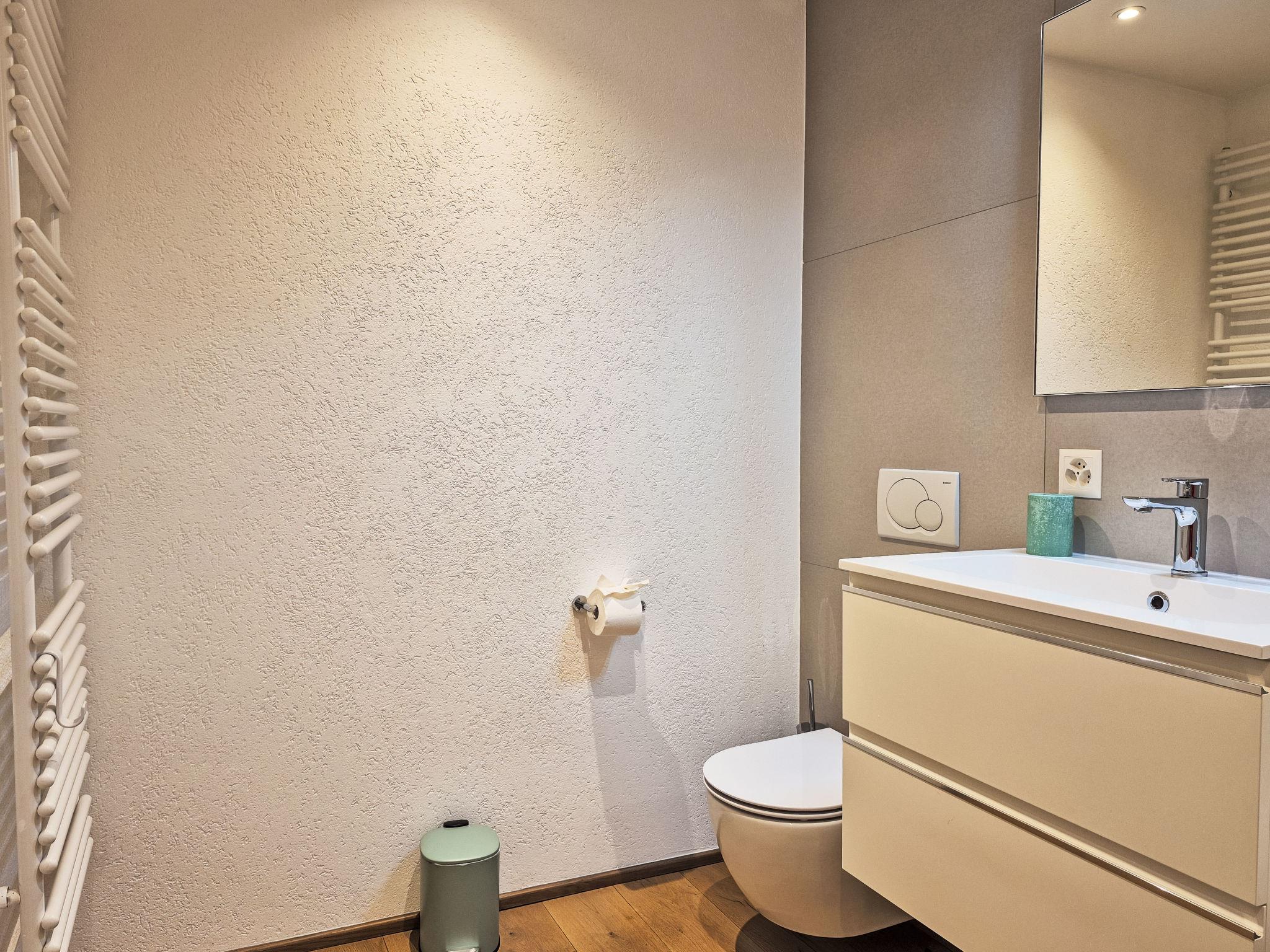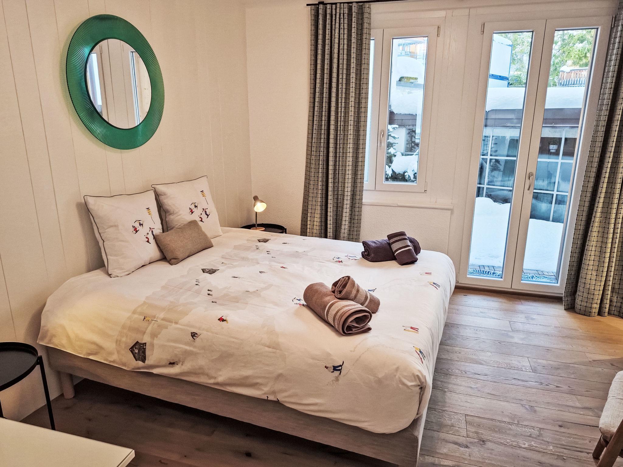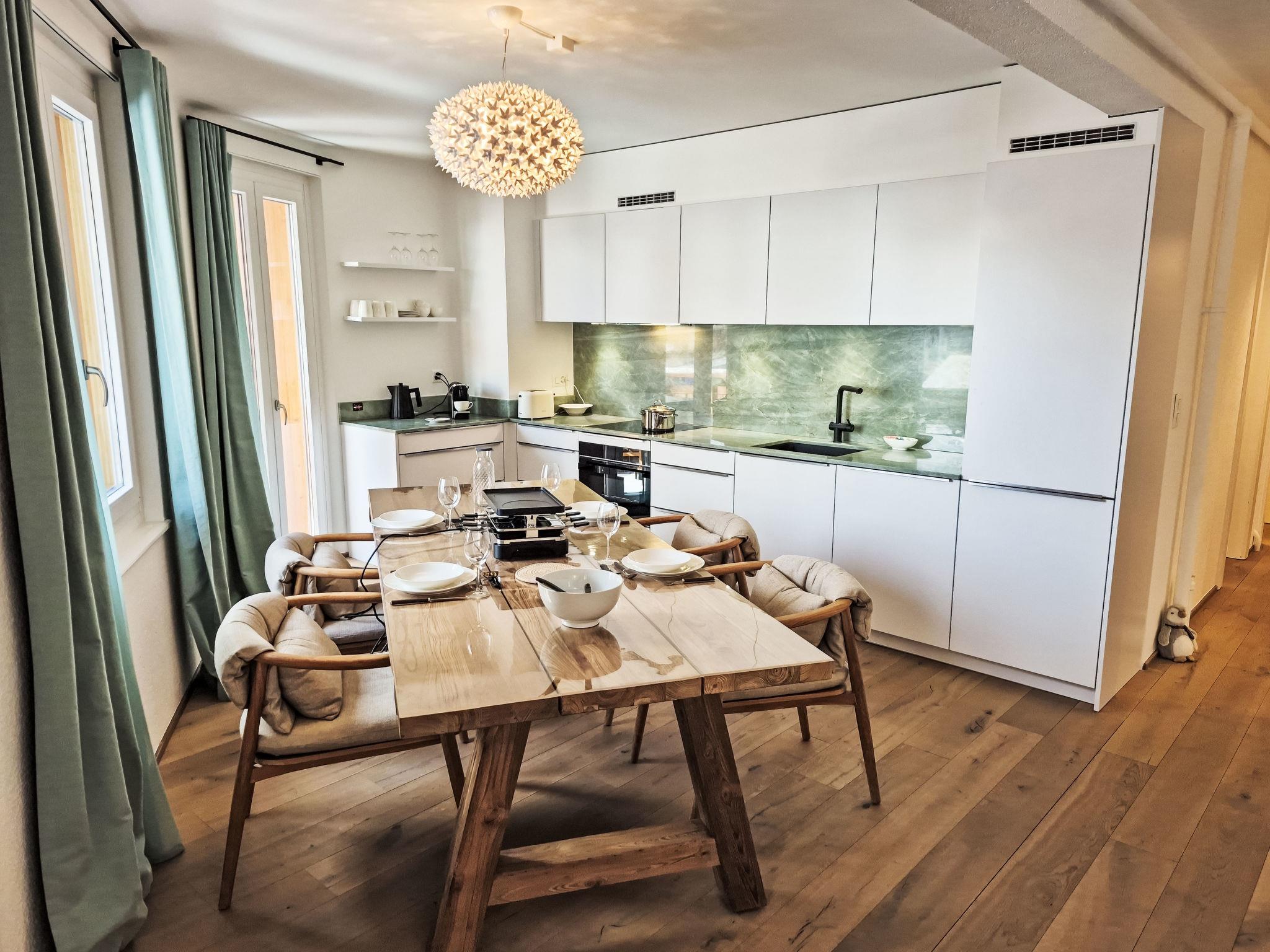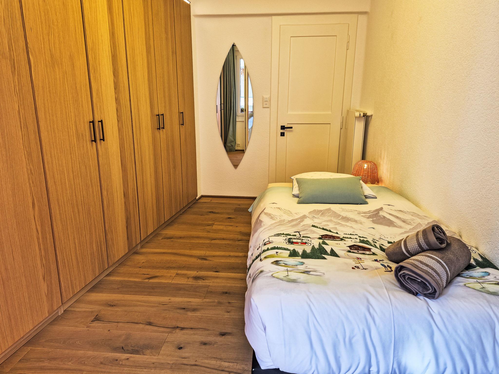 "Résidence Terrazza 1", 4-room apartment 80 m2 on 1st floor. Spacious, partly renovated, very comfortable and tasteful furnishings: large living/dining room with cable TV. Exit to the balcony. 1 room with 1 bed (100 cm, length 200 cm). Exit to the balcony. 1 room with 1 bed (100 cm, length 200 cm). Exit to the balcony. 1 large room with 1 french bed (160 cm, length 200 cm), shower/WC. Exit to the terrace, north facing position. Large, open kitchen (oven, dishwasher, 4 induction hot plates, kettle, freezer, electric coffee machine, Capsules for coffee machine (Nespresso) extra, raclette grill, fondue Set (cheese)). Bath/WC. Large balcony, south-east facing position, small terrace, north facing position. Balcony furniture. View of the countryside. Facilities: iron, hair dryer. Internet (WiFi, free). Garage space n 2 (1 car), height 230 cm, width 260 cm. Please note: non-smokers only. The flat also has a cellar with an exercise bike.