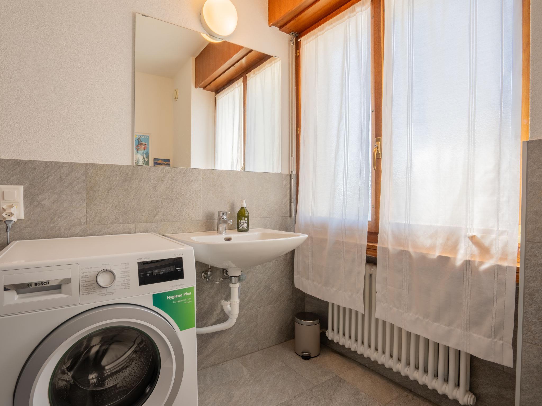 Residence "La Forêt ouest C". Above Montana, in a sunny position, 700 m from the lake, 500 m from the skiing area. In the house: lift, storage room for skis, central heating system, washing machine, tumble dryer (for shared use, extra). Parking (limited number of spaces), public car park at 500 m, extra. Shop 1 km, supermarket 1 km, restaurant 1 km, bakery 1.2 km, 8 minute walk to the centre, bus stop "Résidence Forêt" 10 m, railway station "Funiculaire Montana Gare" 1.3 km, lake Grenon 700 m. Golf course (18 hole) 1.9 km, skisport facilities 500 m, ice rink 1 km. Well-known lakes can easily be reached: Etang Long 2 km, Lac Moubra 2 km. Please note: ski bus (free of charge). In case of good snow conditions, the house is accessible on skis.