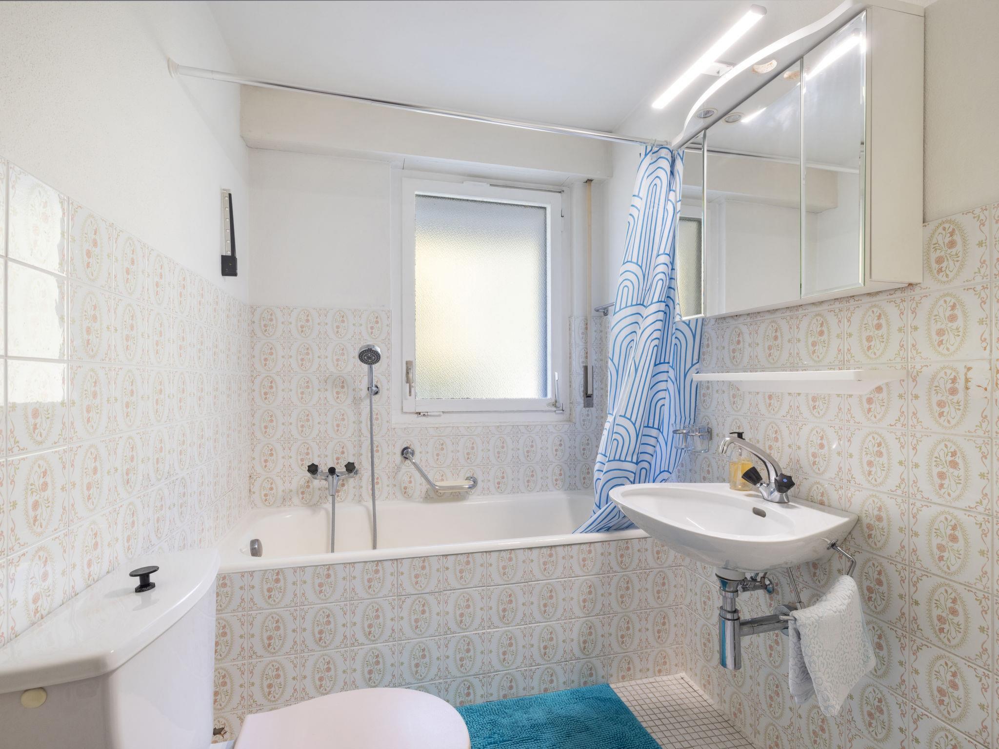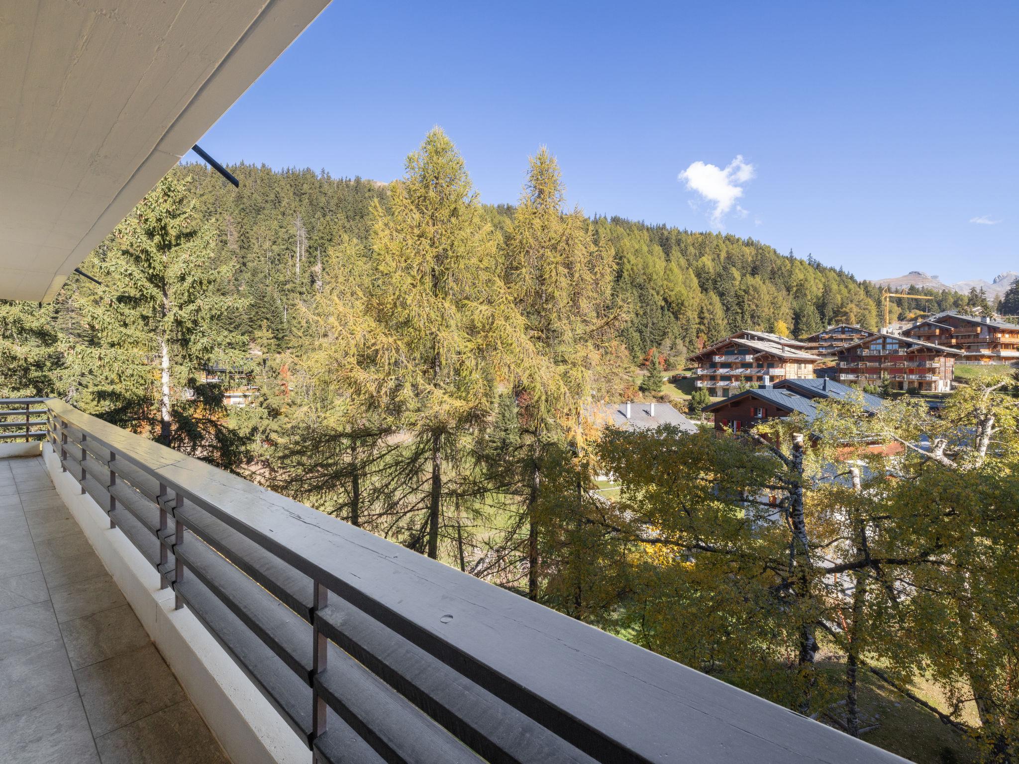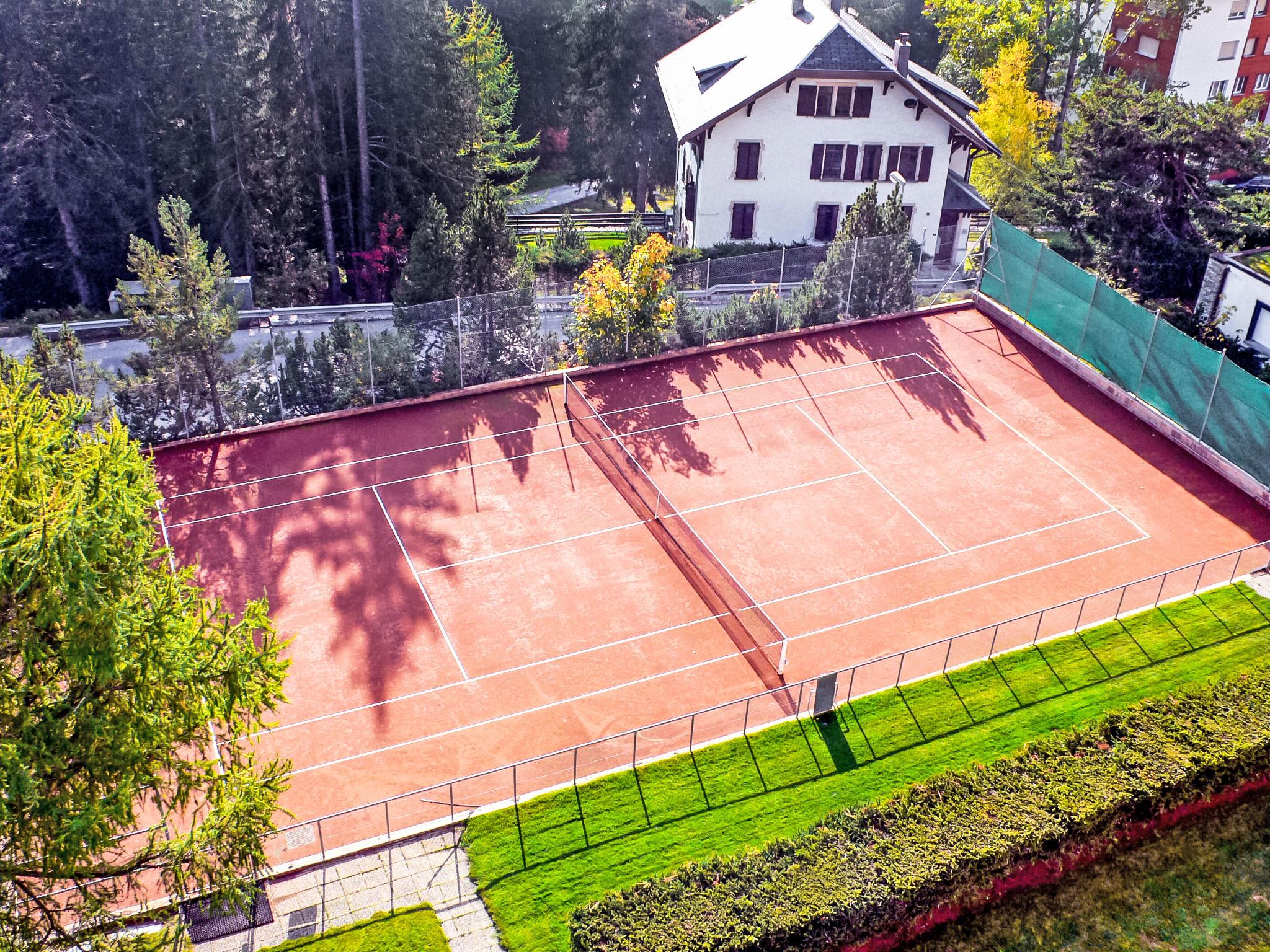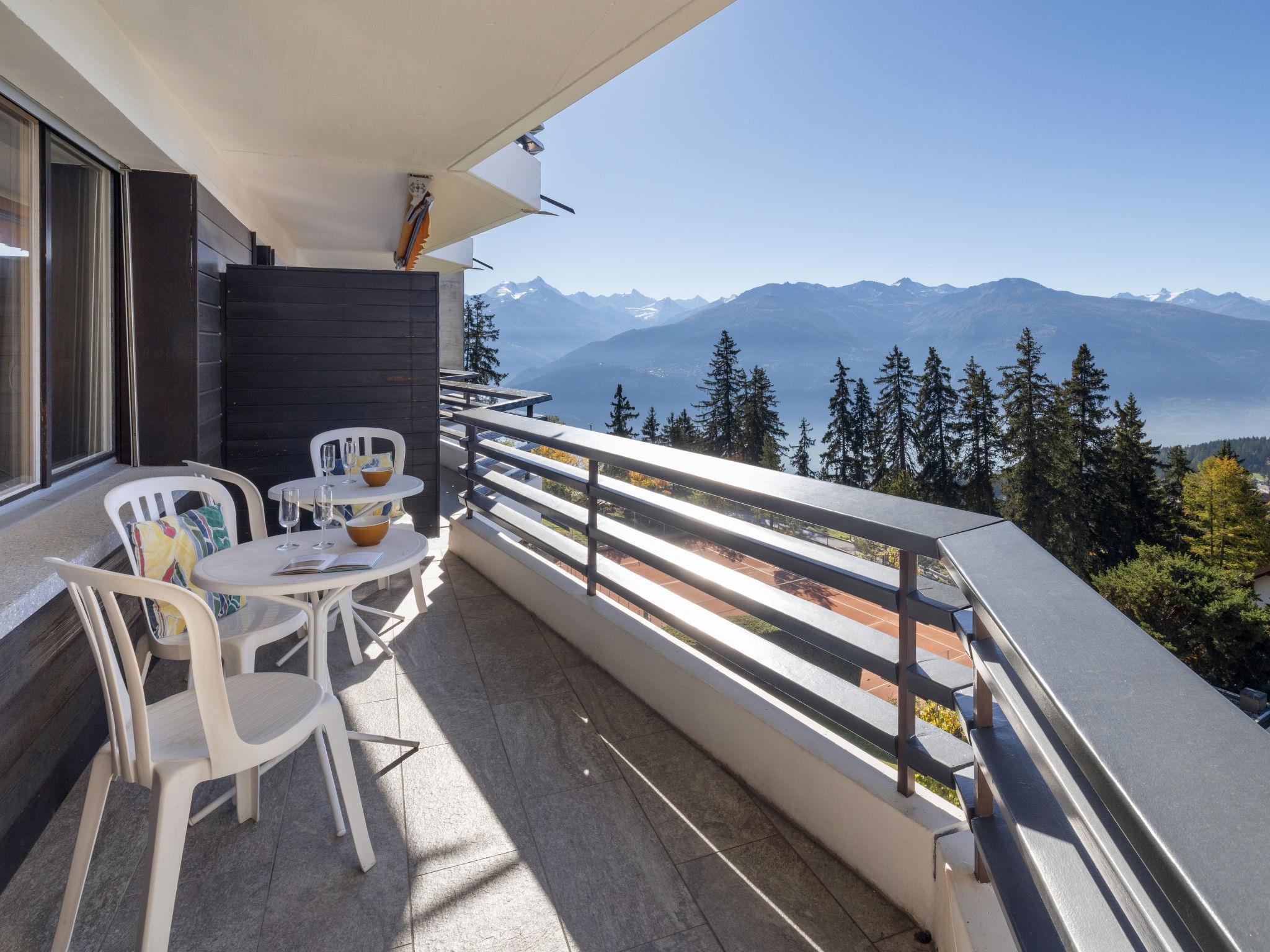 The sauna (16:00-20:00) is not available in low season. Swimming pool closed in November. Large residence "Cransalpin". Above Montana, 1.2 km from the centre of Montana, in a sunny, elevated position, 1.1 km from the lake, 800 m from the skiing area, south-west facing position. For shared use: garden with lawn, indoor pool heated (13 x 8 m, depth 50 - 200 cm, seasonal availability: 01.Dec. - 31.Oct. pool opening hours: 08:00-20:00). Tennis. In the house: sauna, lift, storage room for skis, central heating system, washing machine, tumble dryer (for shared use, extra). Parking (limited number of spaces). Shop 1.2 km, supermarket 1.3 km, restaurant 1 km, bakery 1.4 km, bus stop "Vermala Soleil" 200 m, railway station "Funiculaire Montana Gare" 1.5 km, bathing lake "Moubra" 2.2 km, lake Grenon 1.1 km. Golf course (18 hole) 2.3 km, skisport facilities 800 m, ice rink 1.4 km. Please note: ski bus (free of charge). Additional accommodations can be booked.