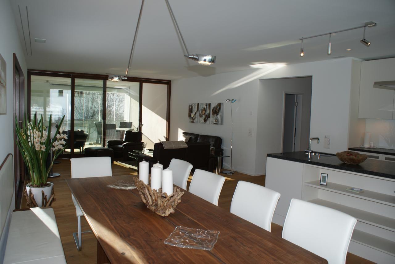 House equipment: Entire house with electronic light detectors, ski room (with boot dryer), bicycle room, automatic light sensors at the entrance and in the stairwell. In summer the flat can only be rented from Saturday. Pets on request, 2 parking spaces in the garage