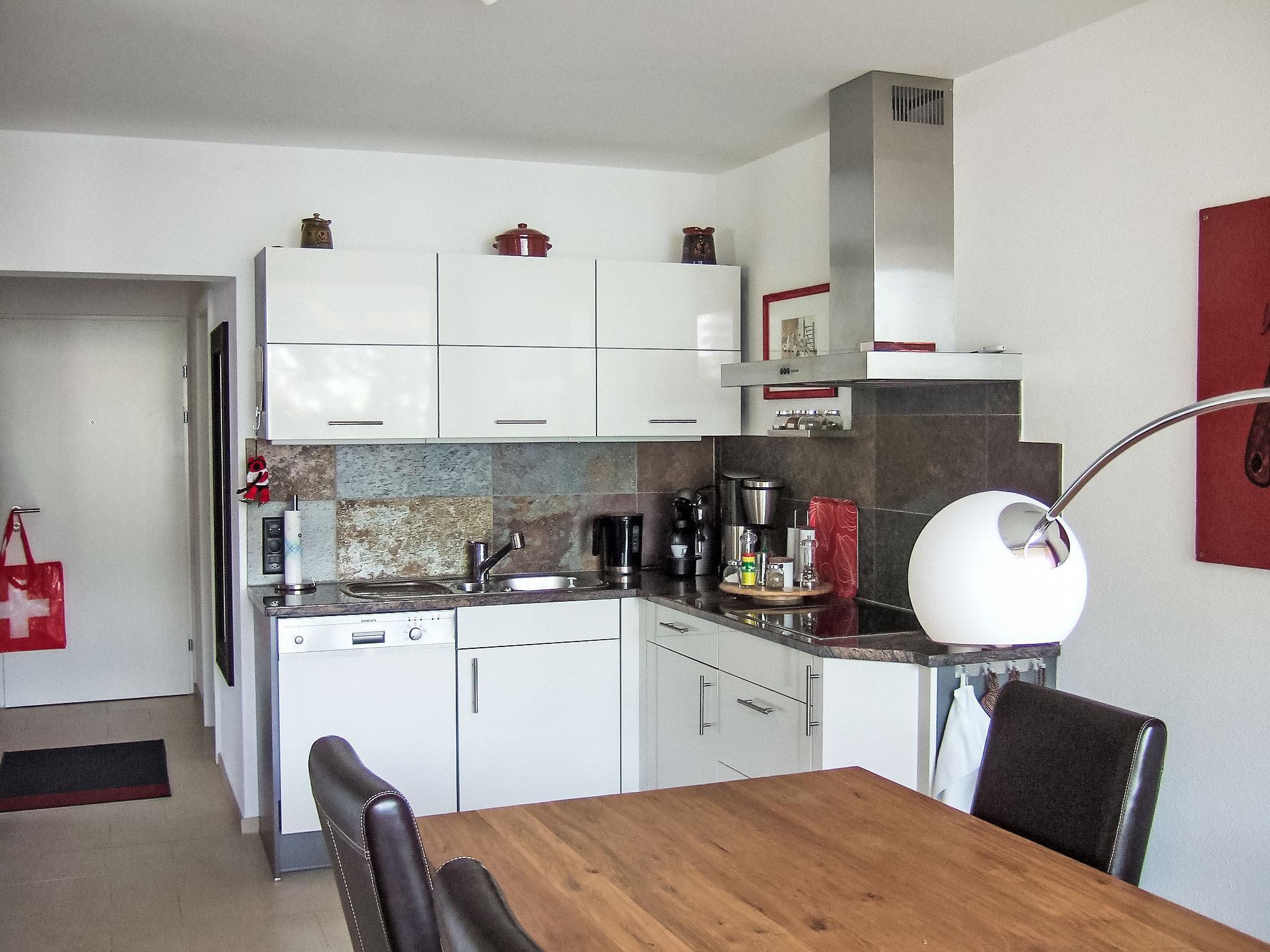 "Promenade Wohnung 21", 2-room apartment 75 m2 on 2nd floor, south-west facing position. Spacious and bright, very beautiful and luxurious furnishings: living/dining room with 1 sofabed and cable TV (flat screen), radio, CD-player, DVD and fan. Exit to the balcony. 1 room with 1 double bed (2 x 90 cm). Open kitchen (oven, dishwasher, 4 ceramic glass hob hotplates, microwave, freezer, electric coffee machine, Capsules for coffee machine (Nespresso) extra). Shower/WC, double hand-basin. Heating. Natural stone floors. Balcony 15 m2, south facing position and west facing position. Balcony furniture. View of the mountains and the resort. Facilities: Internet (WiFi, free). Garage space n 14. Please note: apartment street side. Non-smokers only. 13856