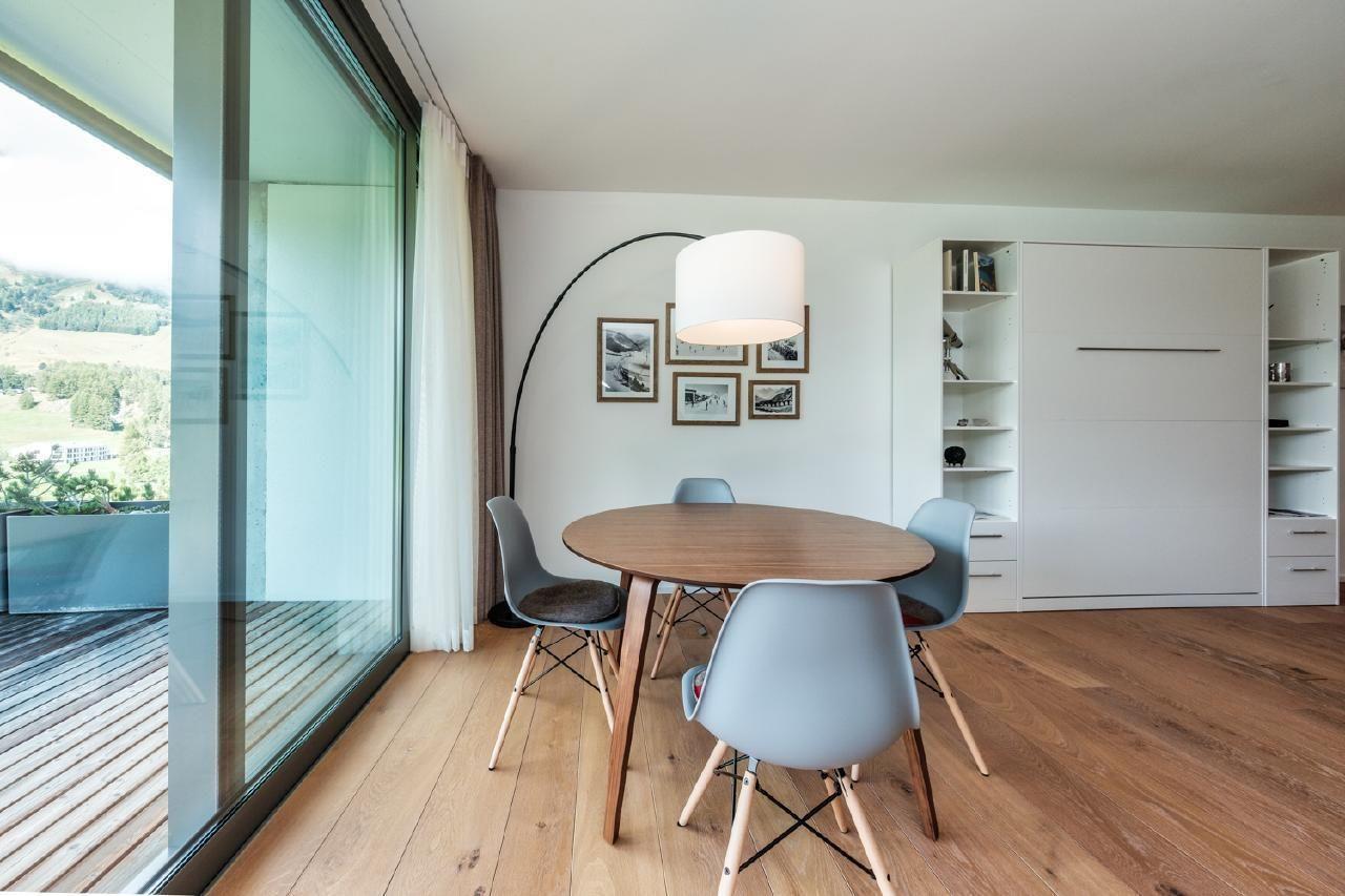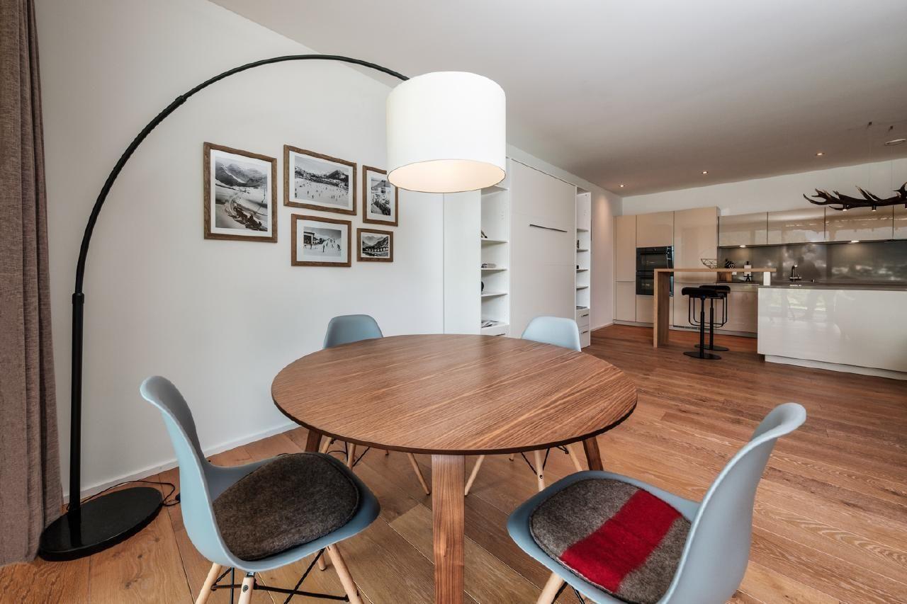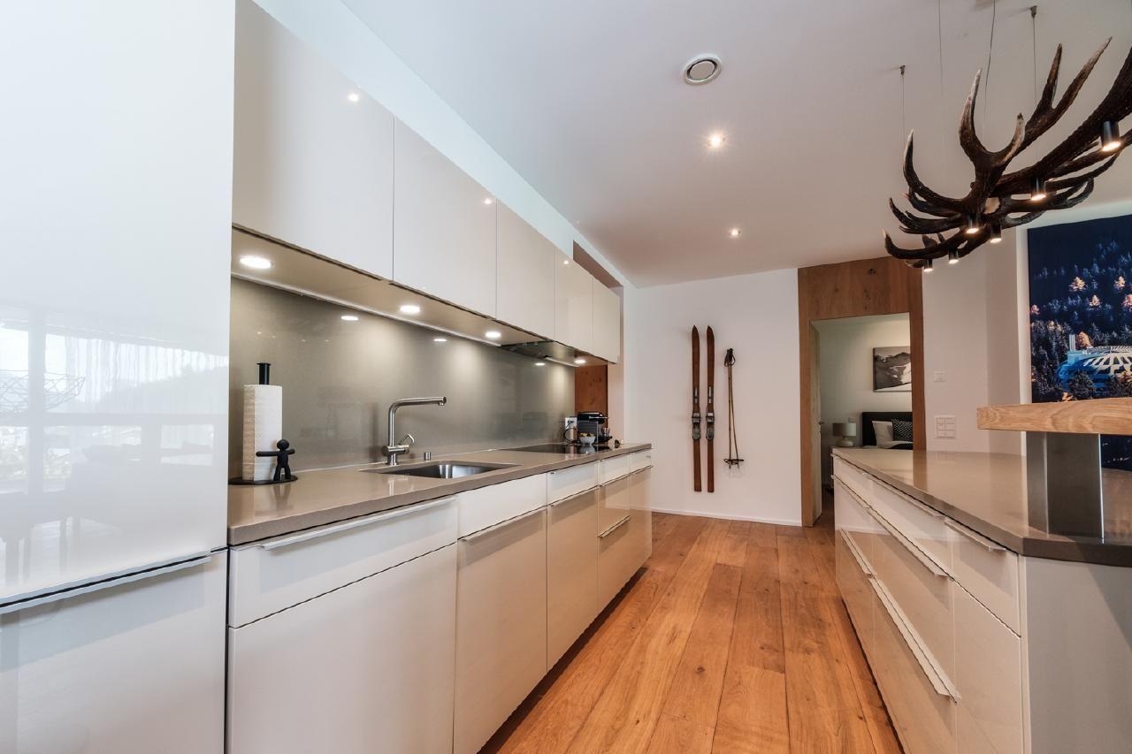 The outdoor area with a 30 square metre terrace invites you to relax. With a garden table for 6 people and two sun loungers, you can enjoy the sun and the view to the full. A private ski and bike room as well as private parking in the underground car park round off the luxurious offer and provide comfort and security for your equipment and your vehicle.