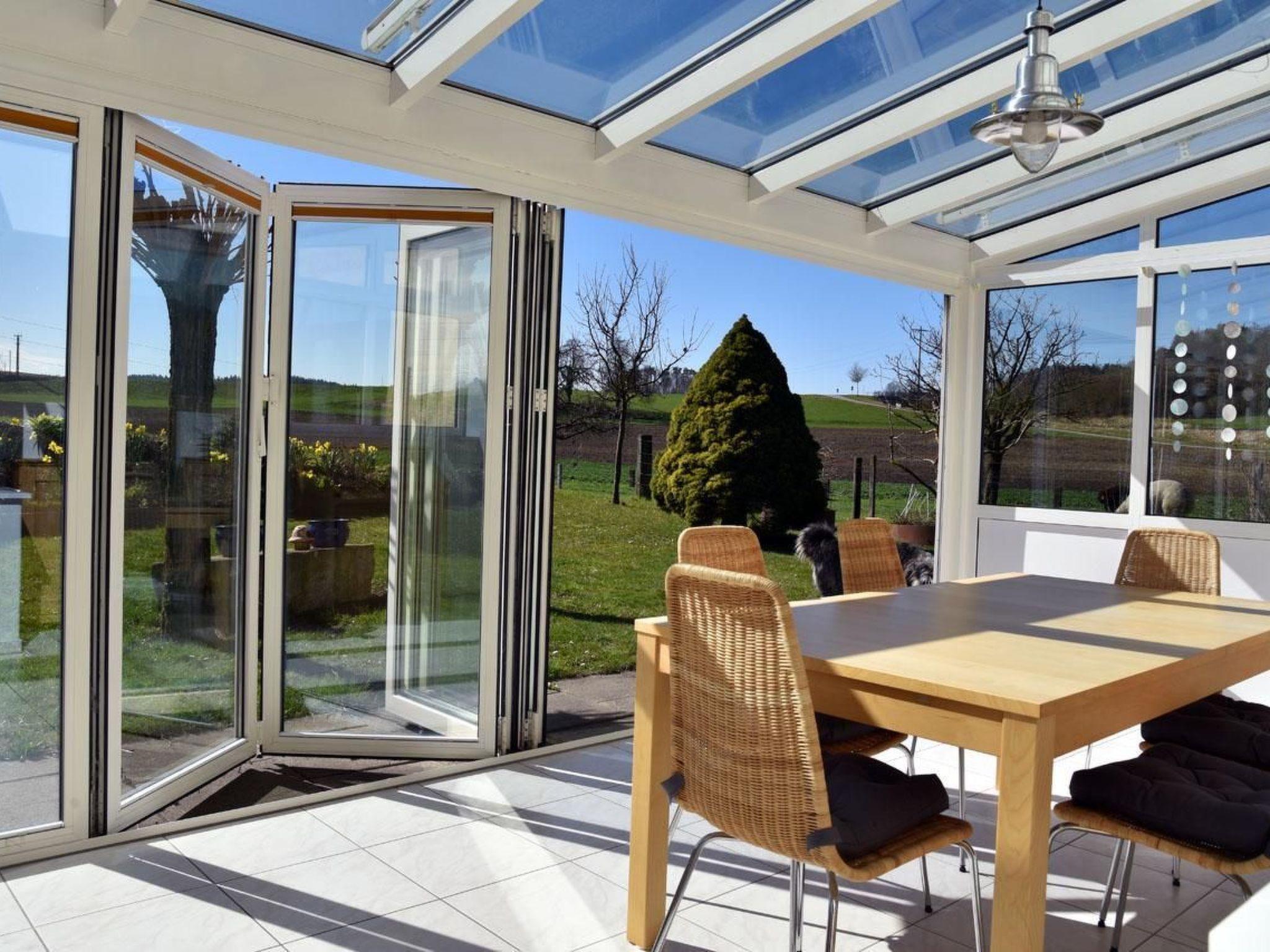 Haslers Hof is situated in an idyllic rural area in Dinhard between Seuzach and Thalheim in the Winterthur region. 8.5 km from the city of Winterthur and only 3.5 km from the Thur (river). Our farm is very easy to reach by train, just a 3-minute walk from Thalheim-Altikon railway station. The main occupation of our well-kept farm is farming and fattening cattle. For our guests we have a gently renovated holiday flat with a large garden. A true paradise for children, there are various small animals grazing directly in front of the flat and plenty of space to play. Our house is the starting point for many beautiful excursions. Such as the beautiful little town of Stein a. Rhein, the Rhine Falls and the rope park in Neuhausen, the Thurauen Nature Centre in Flaach, the Technorama and the Skillspark in Winterthur or Cony Land in Lipperswil and Lake Constance (Untersee from Stein am Rhein).