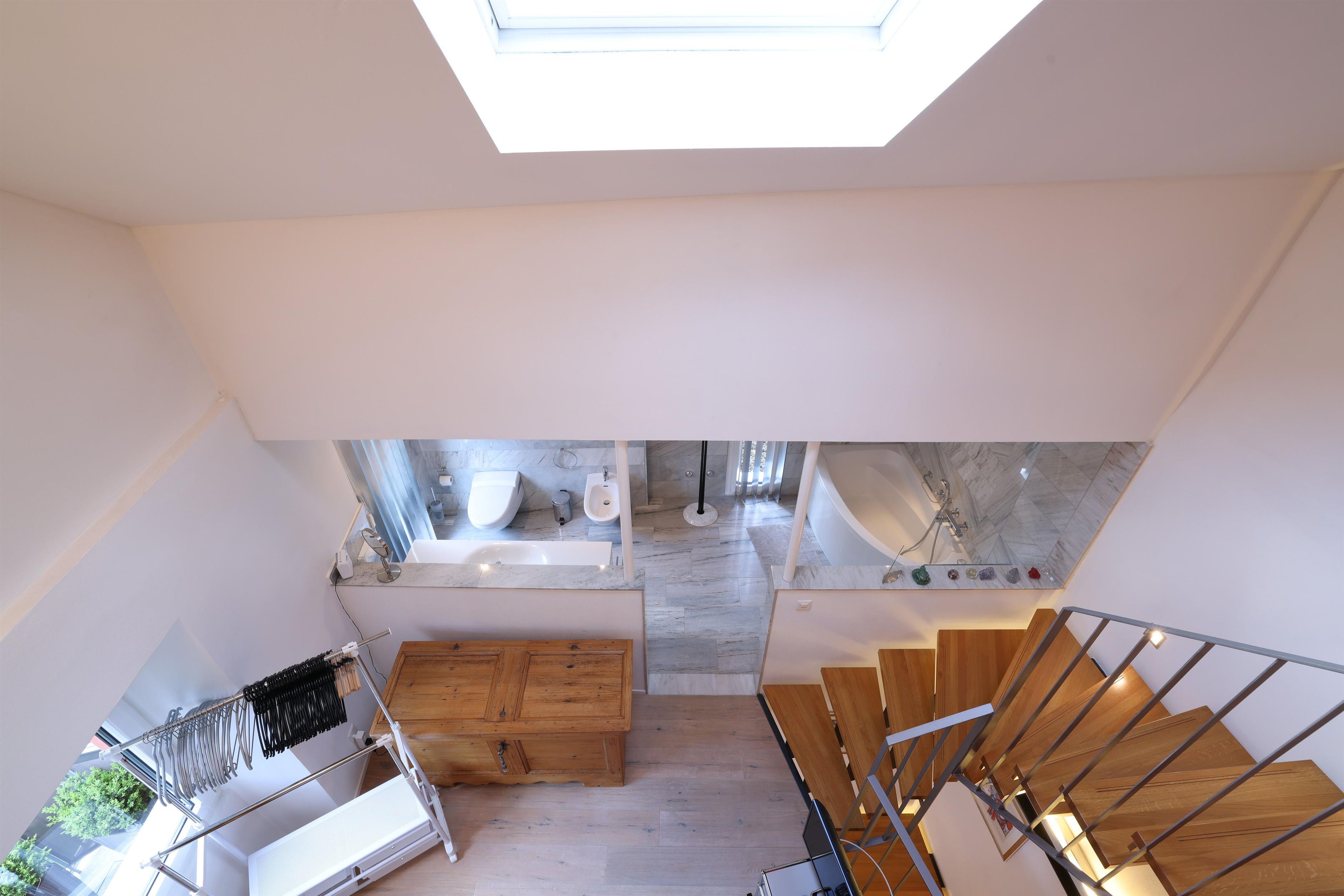 Inside, the house impresses with a unique, multi-storey living area, which is characterised by its open design without doors - with the exception of the utility room and a non-lockable sliding glass door to the wet room. The interior features - in addition to two elegant marble bathrooms, inviting oak parquet flooring in the living area and characteristic red stucco panelling on the fireplaces - also include modern amenities such as heat pump heating with solar panels and underfloor heating. The fully equipped kitchen with white furniture, ceramic hob and plenty of crockery and cutlery - as it is regularly used by the owner herself - rounds off the high-quality interior.