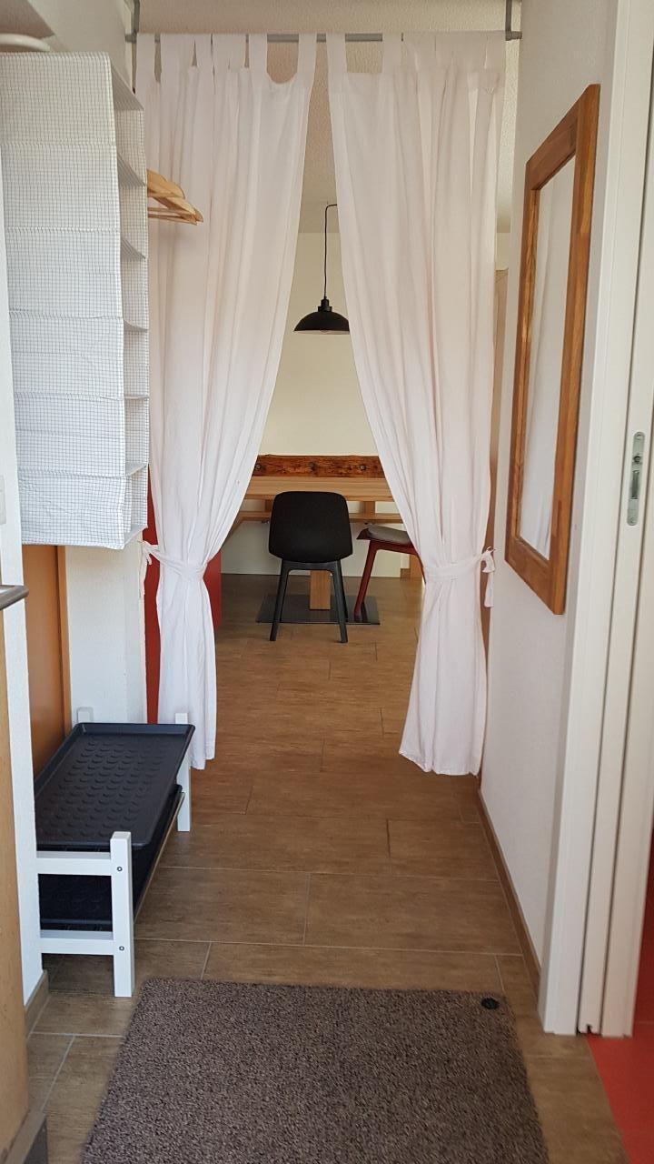 Other bedroom furnishings (bedroom 1): Bedroom and living room are in one room. The double bed is only accessible from the foot end. The bed is not suitable for people with physical disabilities.