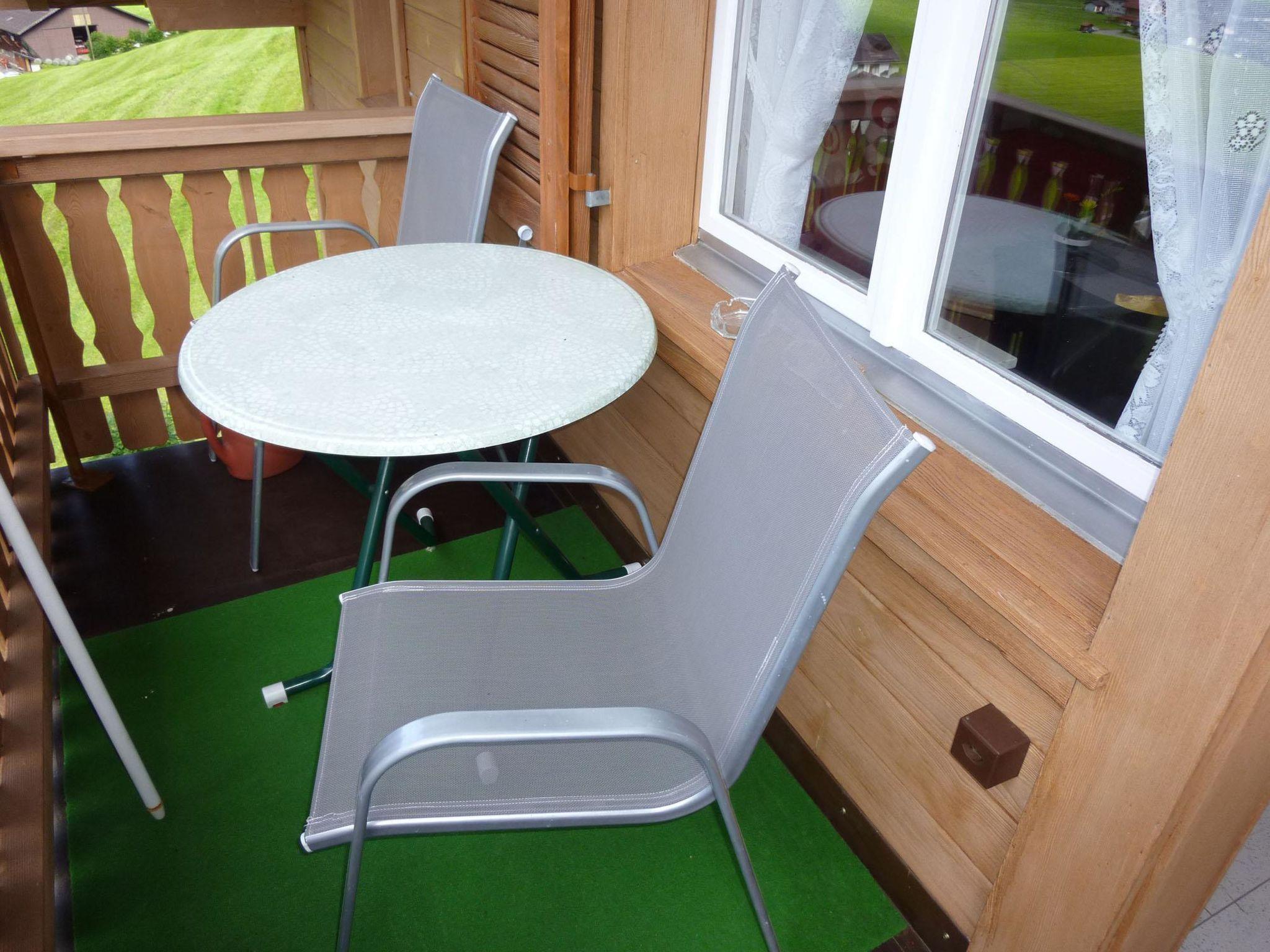 59 m2. More information by the provider: Nice triplex apartment house in chalet-style. Apartment (approx. 59 m2) on the second "upper" floor. The chalet is located in the middle of gentle meadows on the edge of the forest. There is no main road. Very peacefully located. The 2-room apartment has got a small open kitchen with Nespresso coffee machine, double bedroom, living room with 2 single beds, large sofa, tv, free wi-fi, shower-toilet. South-facing balcony with lovely view. Steep road to the house of the holiday apartment, in winter car snow chains can be essential. Pets not allowed.