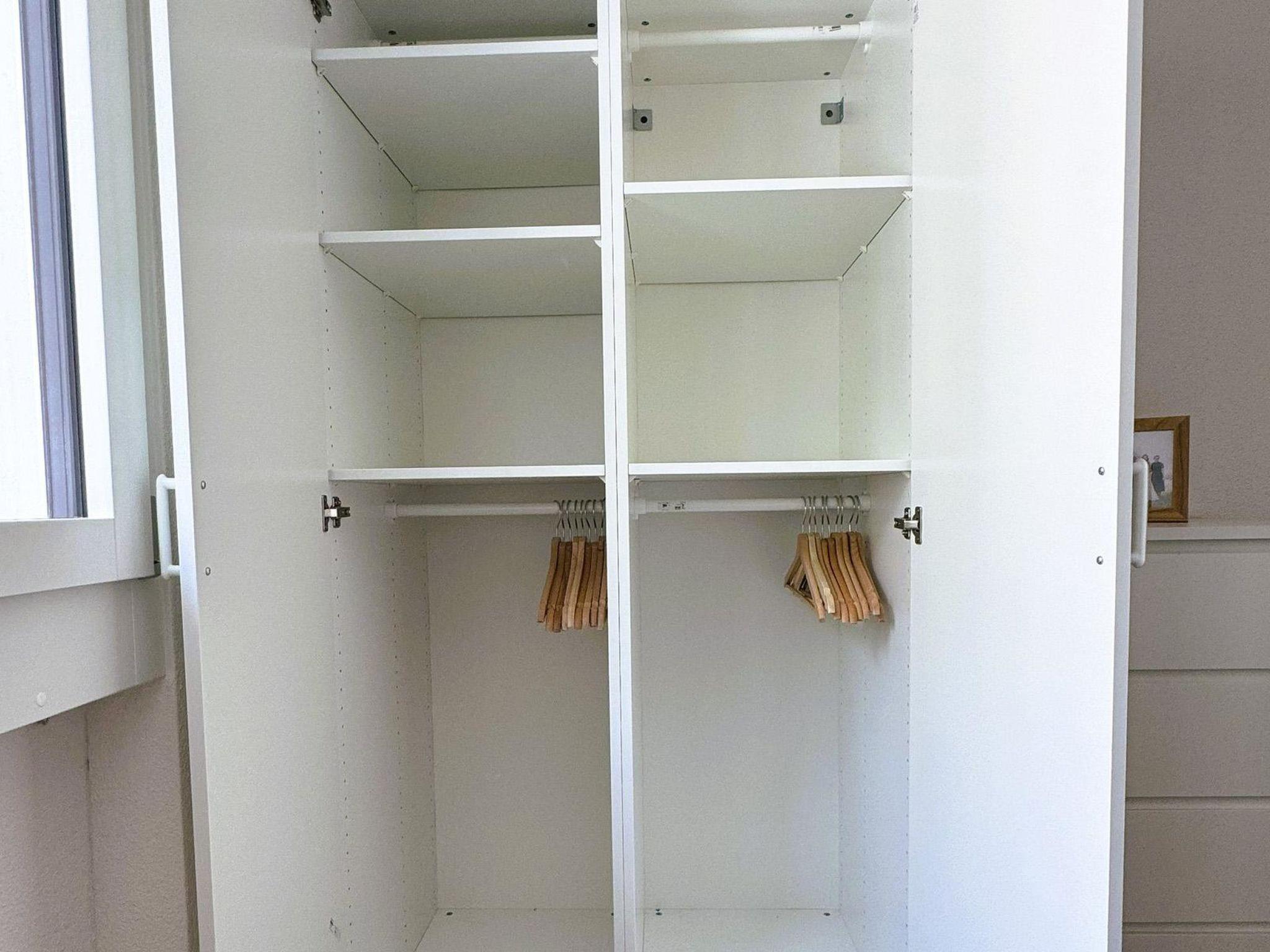 3-room apartment on 2nd floor: living/dining room with TV, 1 bedroom with double bed, 1 childrens bedroom with single bed and 1x2 bunk beds. Kitchen, shower/WC.