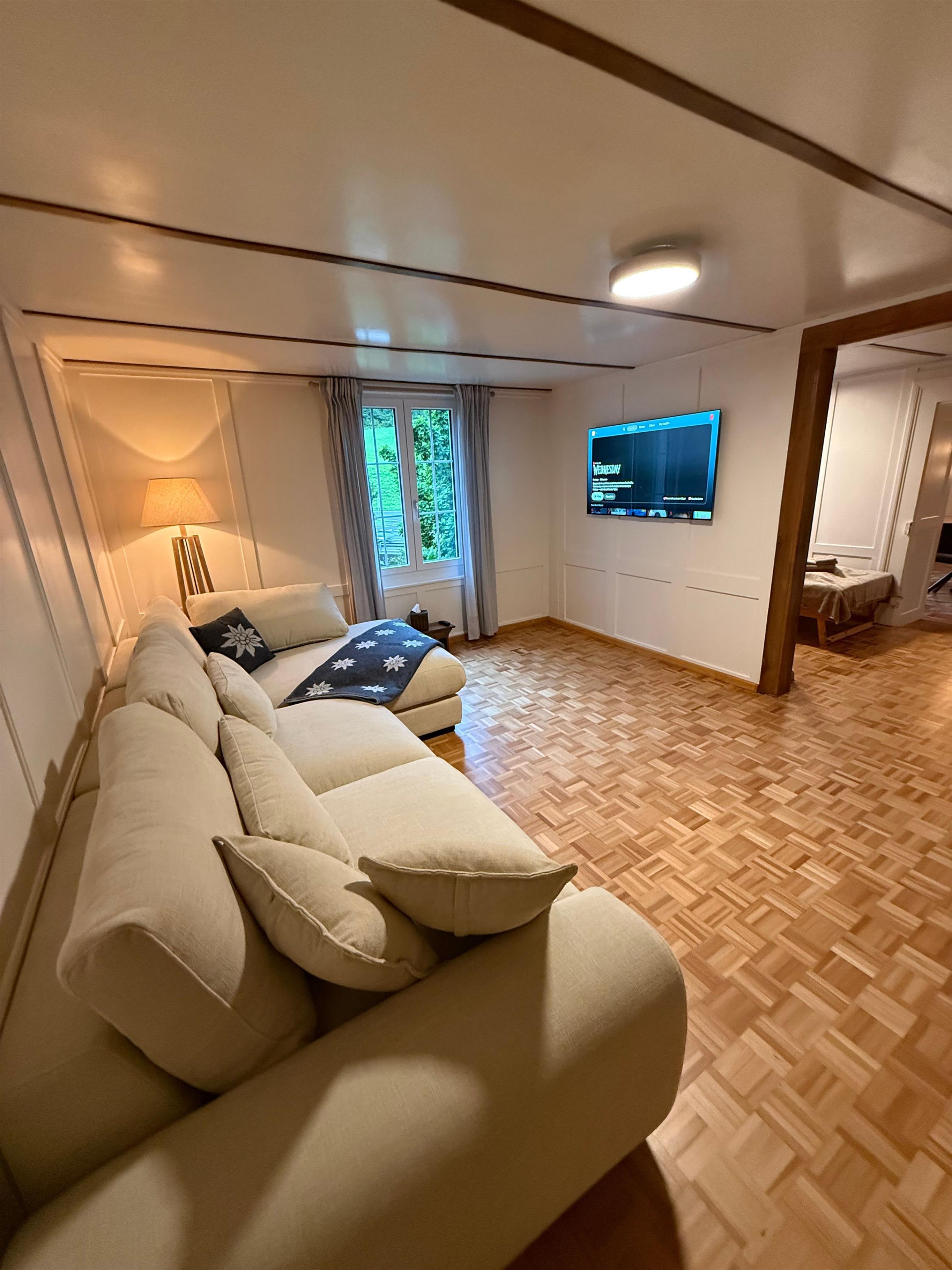 Welcome to your retreat in the heart of Kanton Glarus in the stunning Swiss alps. This spacious apartment for up to 8 guests is part of a lovingly renovated 200-year-old house, where historic character meets modern comfort.