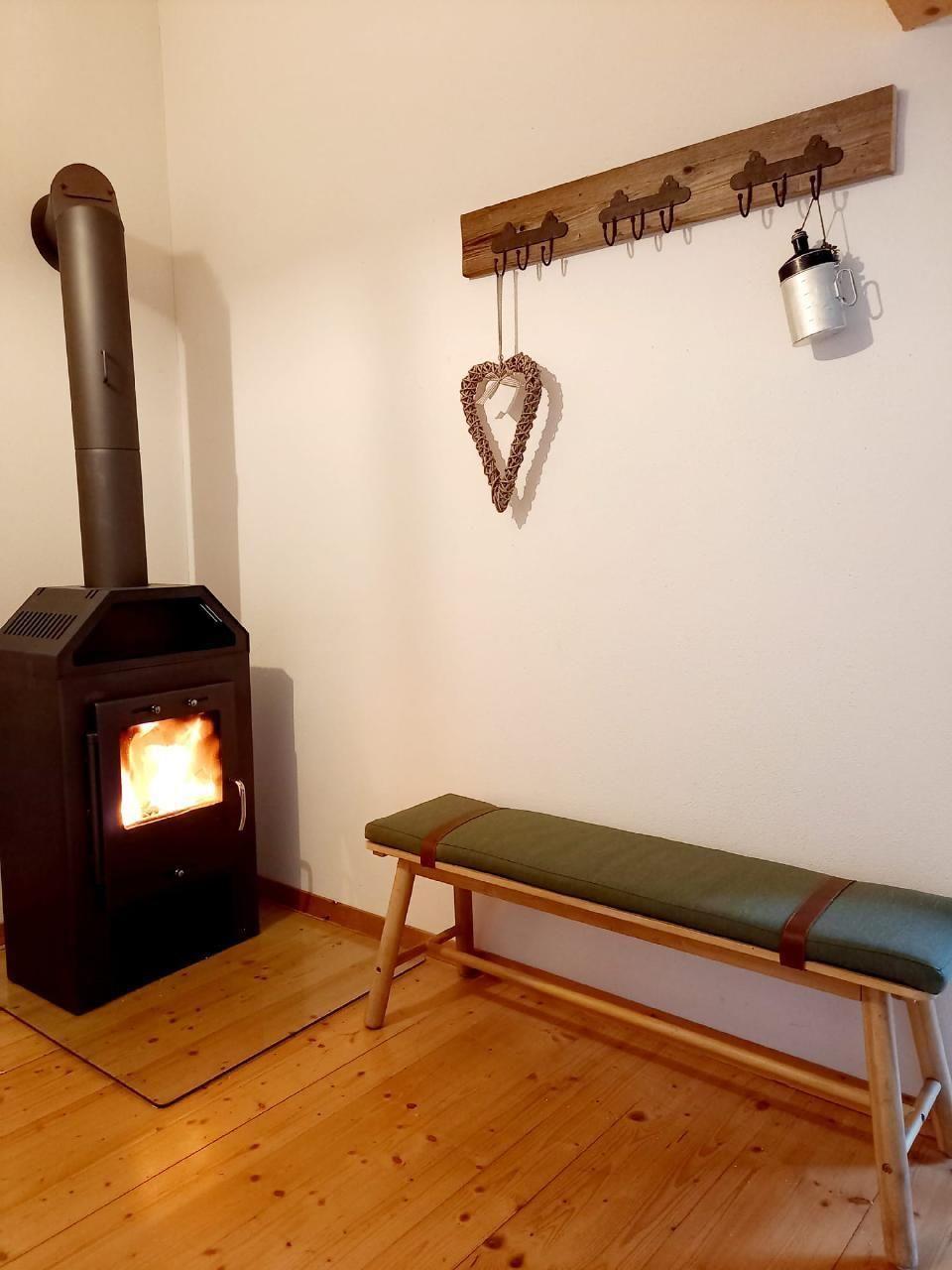 Living/bedroom: table with corner bench, double bed, bunk bed, nostalgic children's bed, wardrobe, sofa, TV