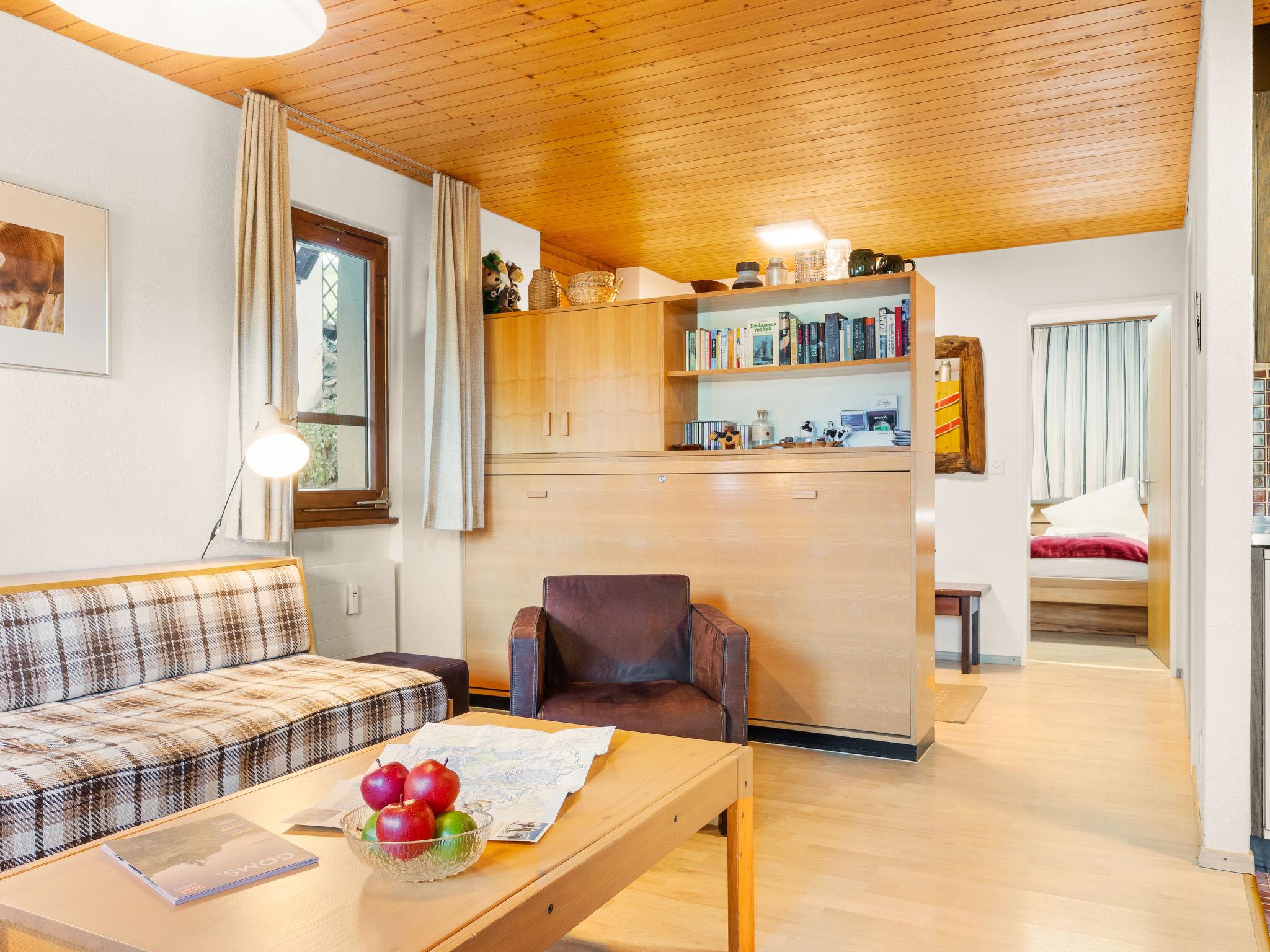 "Aragon E112", 2-room apartment 48 m2, on the ground floor. Practical and cosy furnishings: living/dining room with cable TV (flat screen). Exit to the patio. 1 double bedroom. Open kitchen (3 hot plates, oven) with dining table. Bath/WC. Patio. Terrace furniture. Beautiful view of the mountains and the countryside. Facilities: baby cot (extra). Internet (WiFi, free). Garage space n 37. Please note: non-smokers only. Maximum 1 pet/ dog allowed.