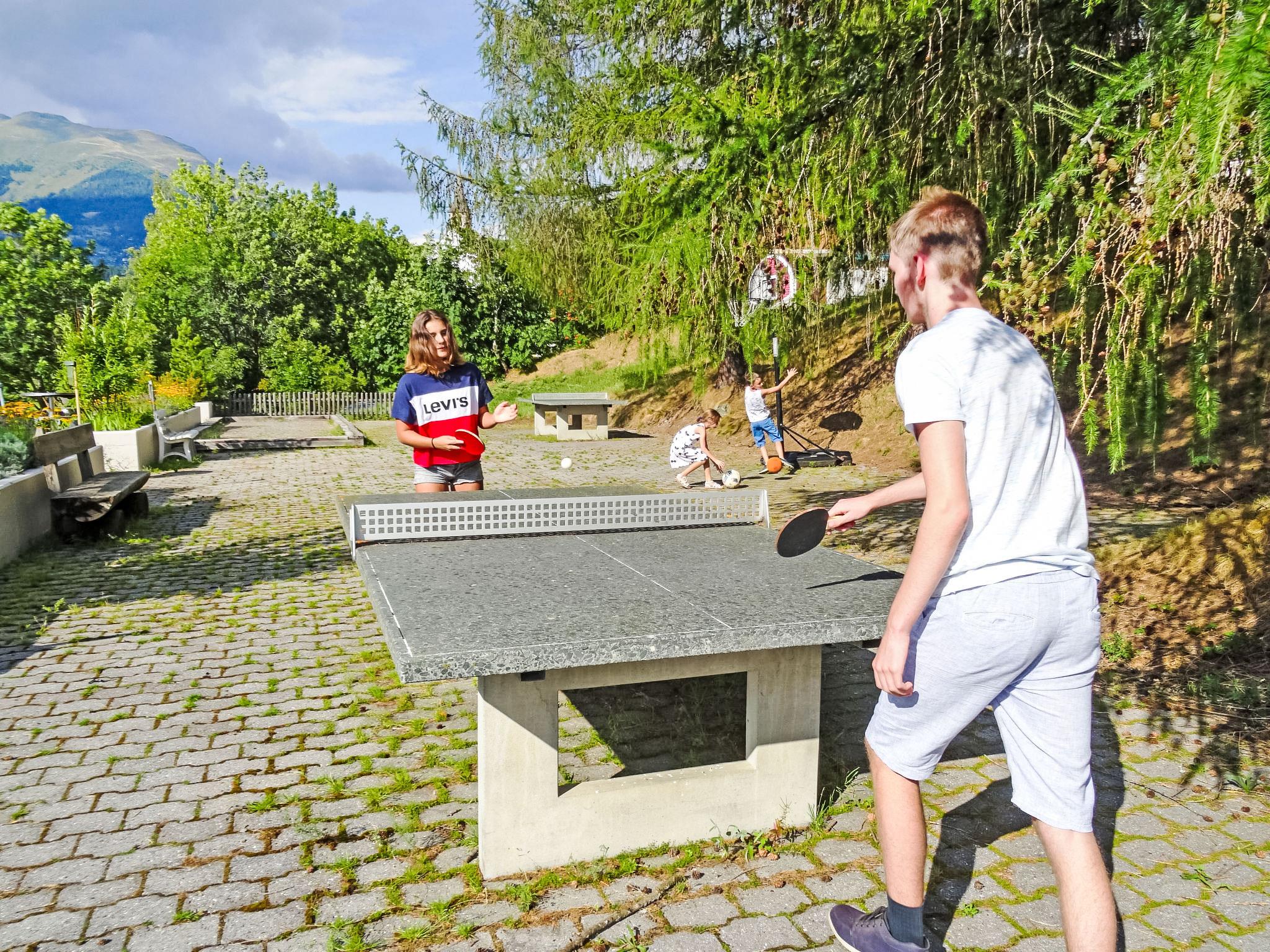 Cosy, rustic holiday village "Aragon", 1'200 m a.s.l.. 21 houses in the resort. On the outskirts, 500 m from the centre of Ernen, in a quiet, sunny position on a slope, 4 km from the skiing area. For shared use: table tennis, barbecue, fireplace, children's playground. In the house: storage room for bicycles, storage room for skis, central heating system, washing machine, tumble dryer (for shared use, extra). Motor access to the grounds (mountain road). In Winter: please take snow chains, 4x4 car recommended in winter. Communal covered parking. Shop 500 m, bus stop 100 m. Golf course (18 hole) 25 km, tennis 4 km, indoor tennis centre 4 km, sports centre 4 km, gondola lift 4 km, skisport facilities 4 km, ski rental 4 km, ski bus stop 100 m, ski school 4 km, cross country ski track 4 km. Well-known ski regions can easily be reached: Aletsch Arena 4 km, Bellwald 12 km. Hiking paths: Landschaftspark Binntal 10 km. The new hanging bridge connects the two hiking estates of Ernen and Bellwald and provides access to the national cycle route nr. 1 (road of the Rhone glacier lake to Lake Geneva). Between Ernen and Mühlebach, the bridge provides direct access to the Matterhorn Gotthard train.