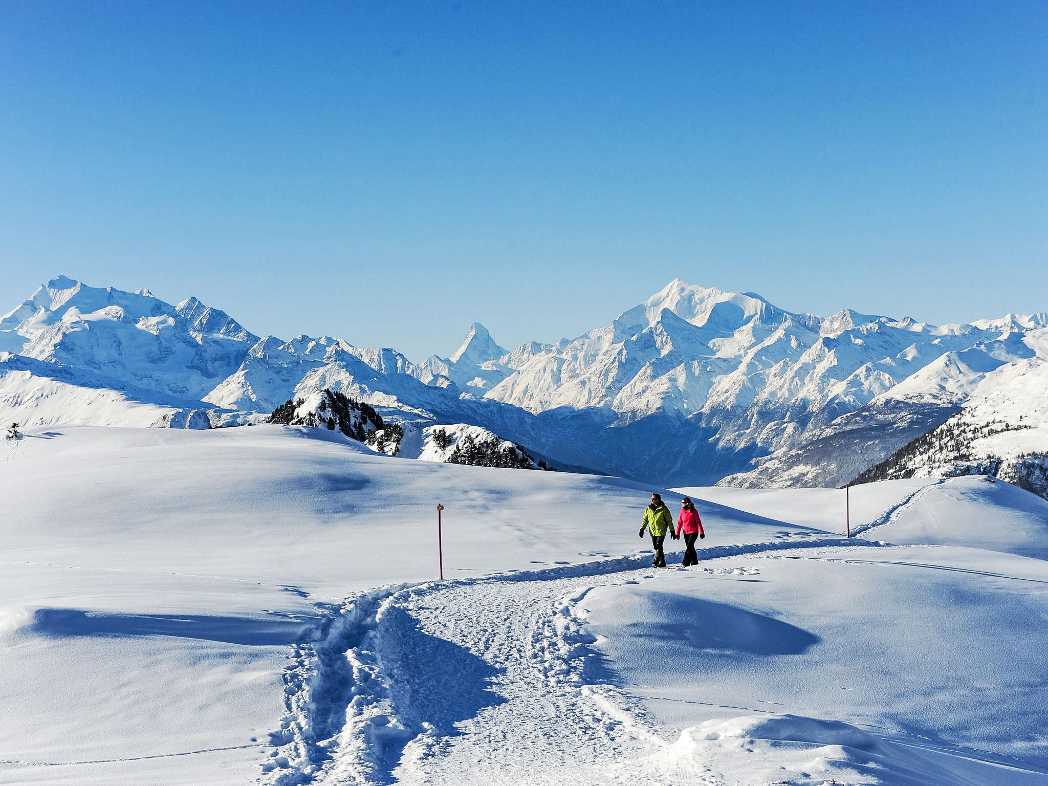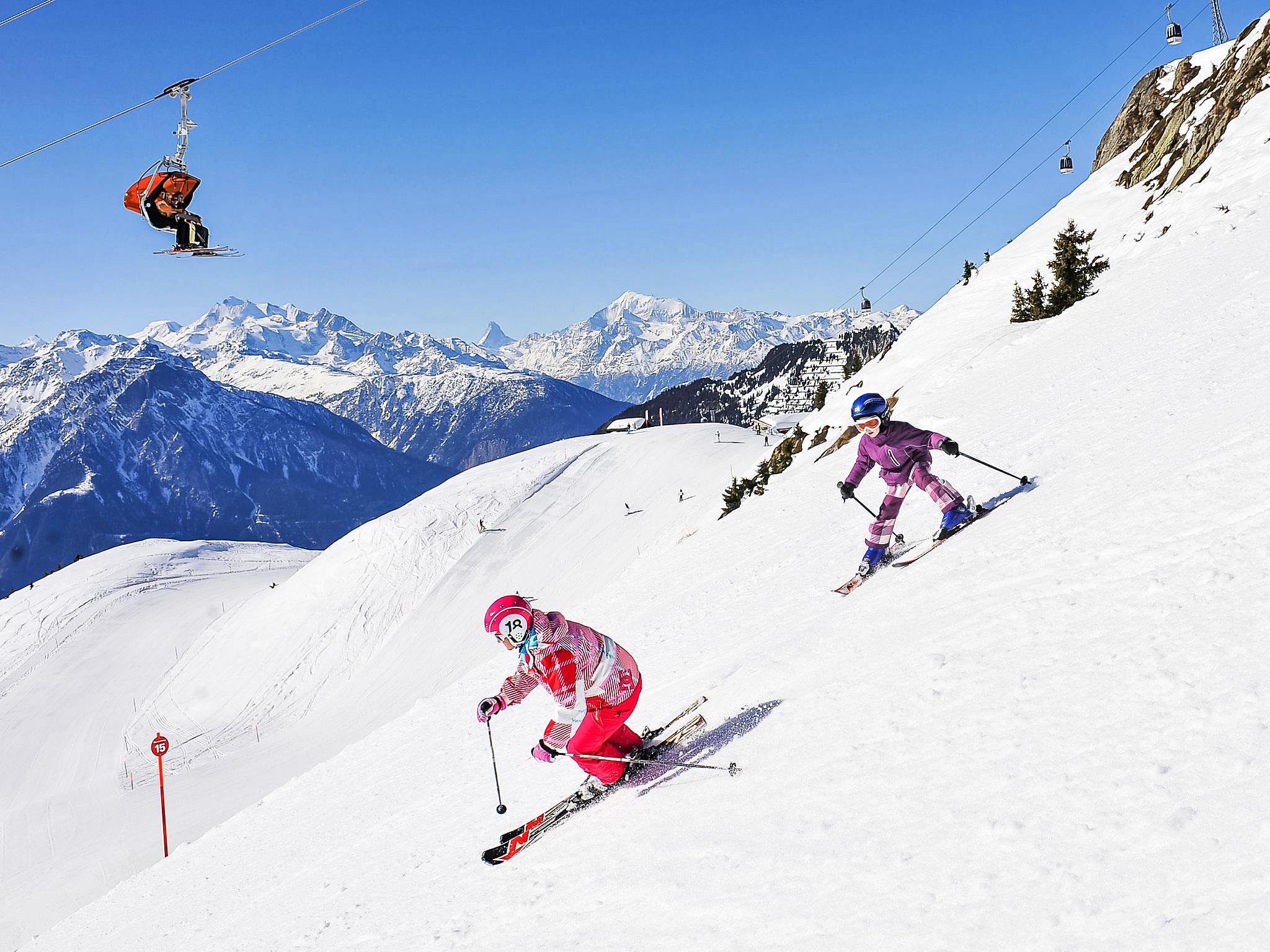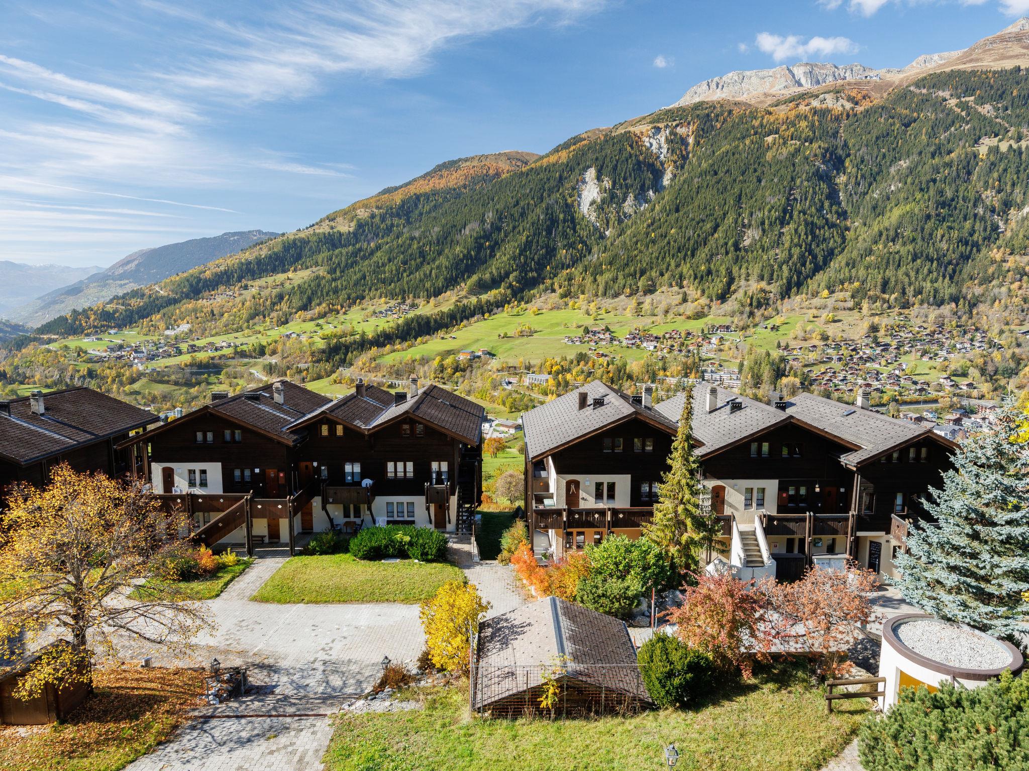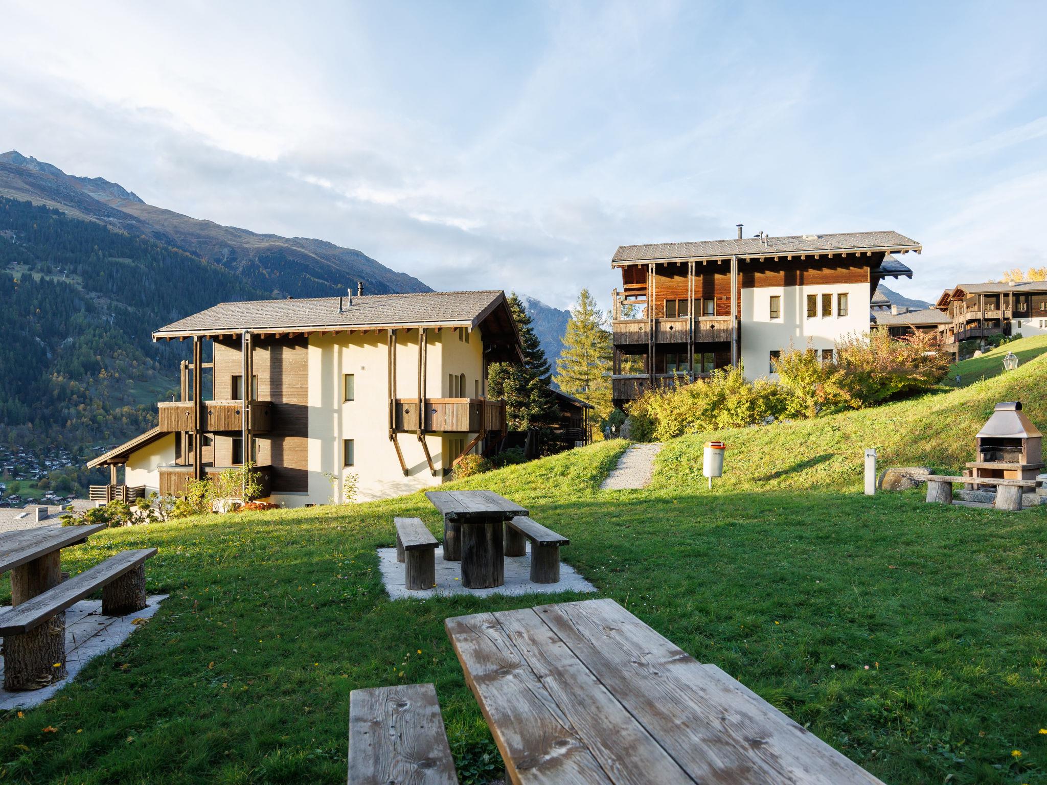 Cosy, rustic holiday village "Aragon", 1'200 m a.s.l.. 21 houses in the resort. On the outskirts, 500 m from the centre of Ernen, in a quiet, sunny position on a slope, 4 km from the skiing area. For shared use: table tennis, barbecue, fireplace, children's playground. In the house: storage room for bicycles, storage room for skis, central heating system, washing machine, tumble dryer (for shared use, extra). Motor access to the grounds (mountain road). In Winter: please take snow chains, 4x4 car recommended in winter. Communal covered parking. Shop 500 m, bus stop 100 m. Golf course (18 hole) 25 km, tennis 4 km, indoor tennis centre 4 km, sports centre 4 km, gondola lift 4 km, skisport facilities 4 km, ski rental 4 km, ski bus stop 100 m, ski school 4 km, cross country ski track 4 km. Well-known ski regions can easily be reached: Aletsch Arena 4 km, Bellwald 12 km. Hiking paths: Landschaftspark Binntal 10 km. The new hanging bridge connects the two hiking estates of Ernen and Bellwald and provides access to the national cycle route nr. 1 (road of the Rhone glacier lake to Lake Geneva). Between Ernen and Mühlebach, the bridge provides direct access to the Matterhorn Gotthard train.