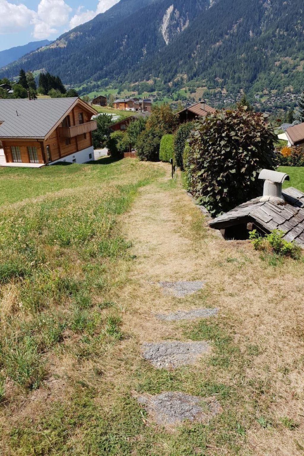 The house has no direct access. The way from the car park is via a few steps and a staircase, then a 60 metre long footpath leading uphill to the chalet.