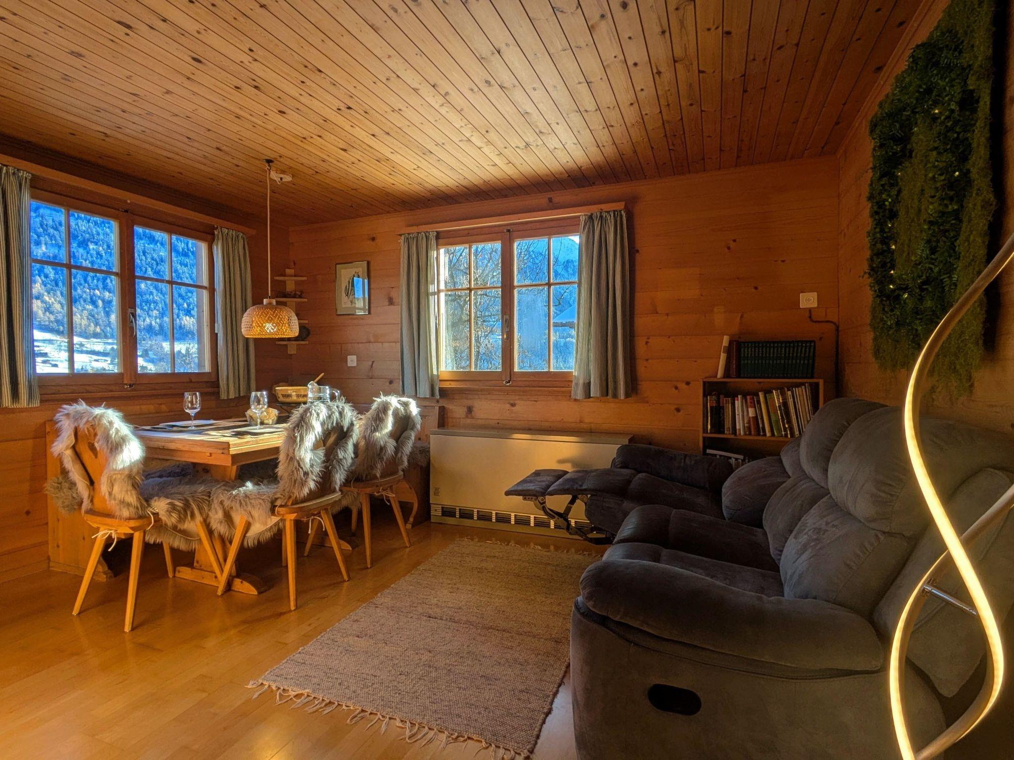 At Chalet Ember, you can expect three bedrooms and a cozy living area with direct access to the balcony, complete with a hanging chair. The kitchen is fully equipped with an oven, dishwasher, microwave, coffee machine, blender, toaster and Raclette and fondue set. For work or longer stays, a home office area, as well as a washing machine and dryer, are available. Internet and a smart TV provide additional comfort during your stay.