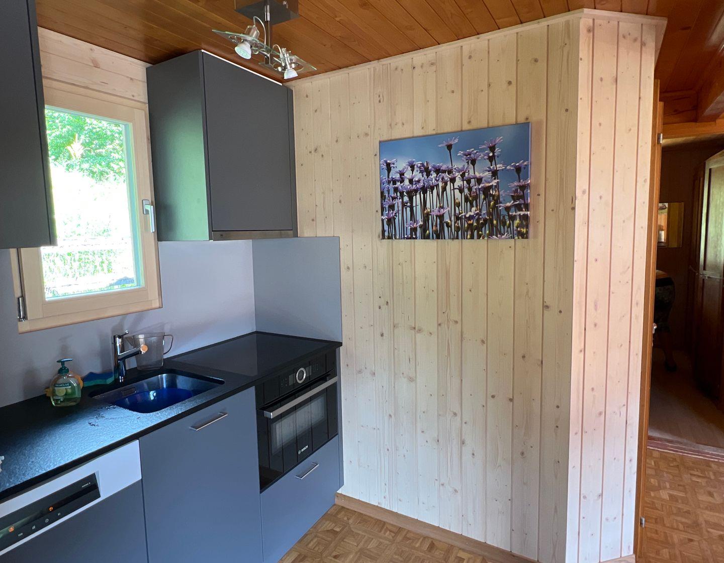 Das Chalet bietet Platz für 4 Personen. Die Küche und das Badezimmer mit WC/Dusche wurden im Frühjahr 2023 komplett renoviert. Die Küche ist mit einem Glas Keramik Kochfeld mit Dunstabzug ausgestattet und im Ofen ist eine Mikrowellenfunktion integriert. Eine Nespresso Kaffeemaschine ist ebenfalls vorhanden.
