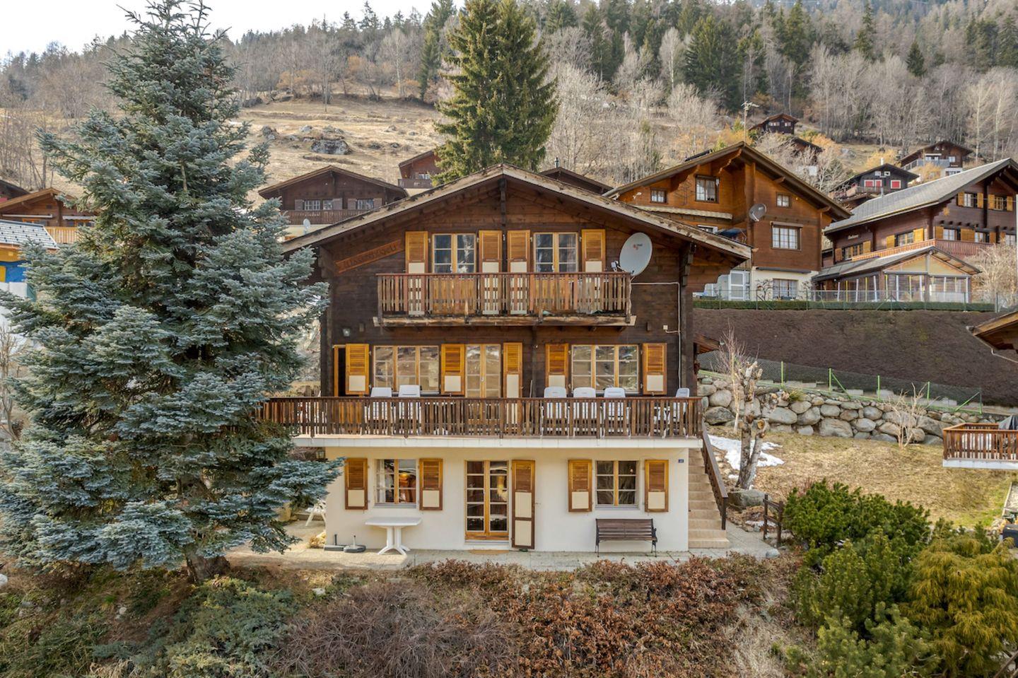 Das Chalet ist an sonniger Lage, mit Aussicht auf das Dorf Fiesch, der südlichen Alpenkette der Walliser Berge und auf das historische Dorf Ernen. Das Dorfzentrum ist in ca 10 Minuten zu Fuss erreichbar wo sie die vollständige Infrastruktur für ihren täglichen Gebrauch vorfinden. Gute Einkaufsmöglichkeiten, Arzt, Apotheke, Tourismusinformationsbüro sowie auch die Luftseilbahn die sie ins wunderschöne Ski- und Wandergebiet der Aletschregion befördert.