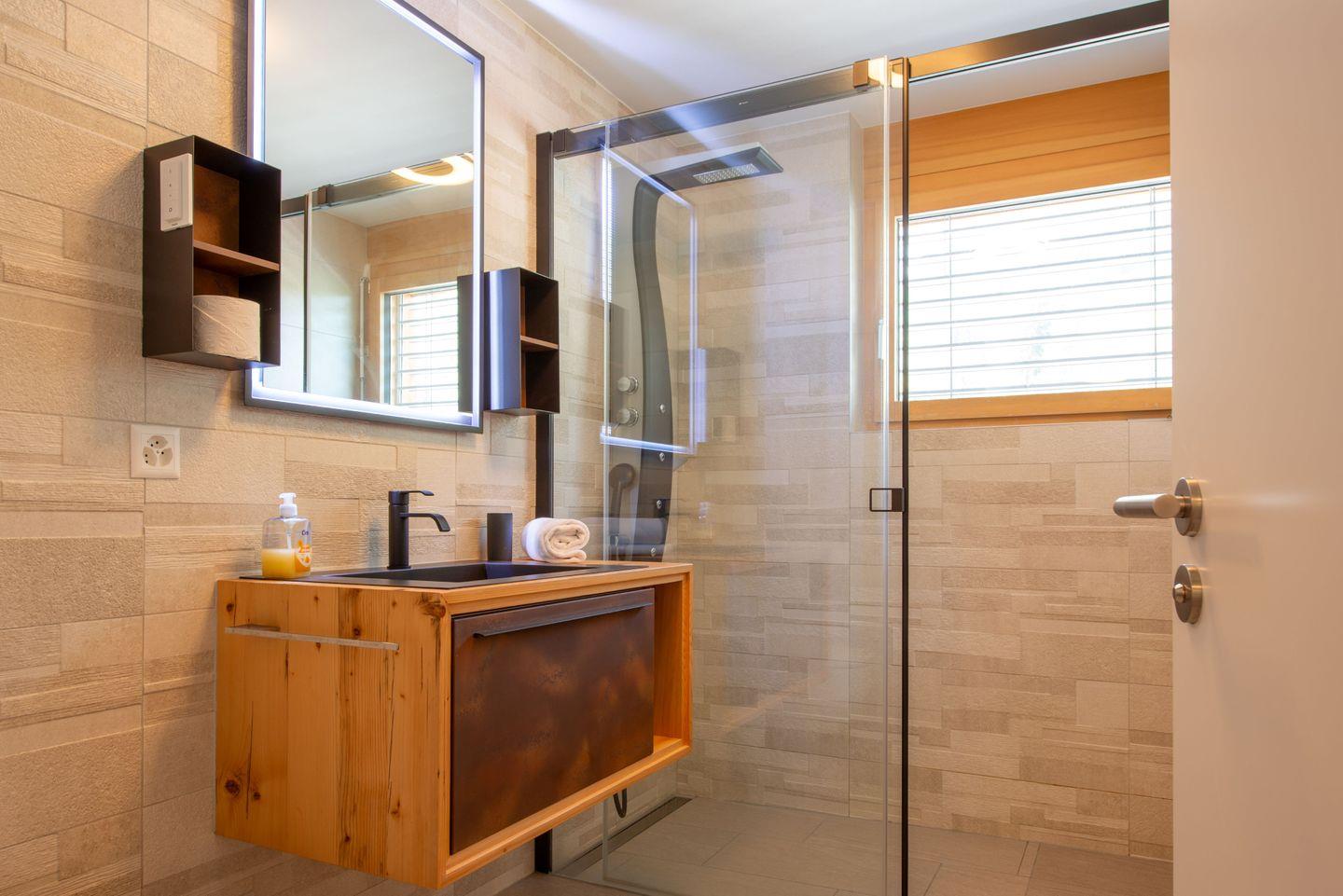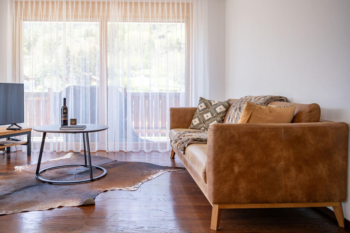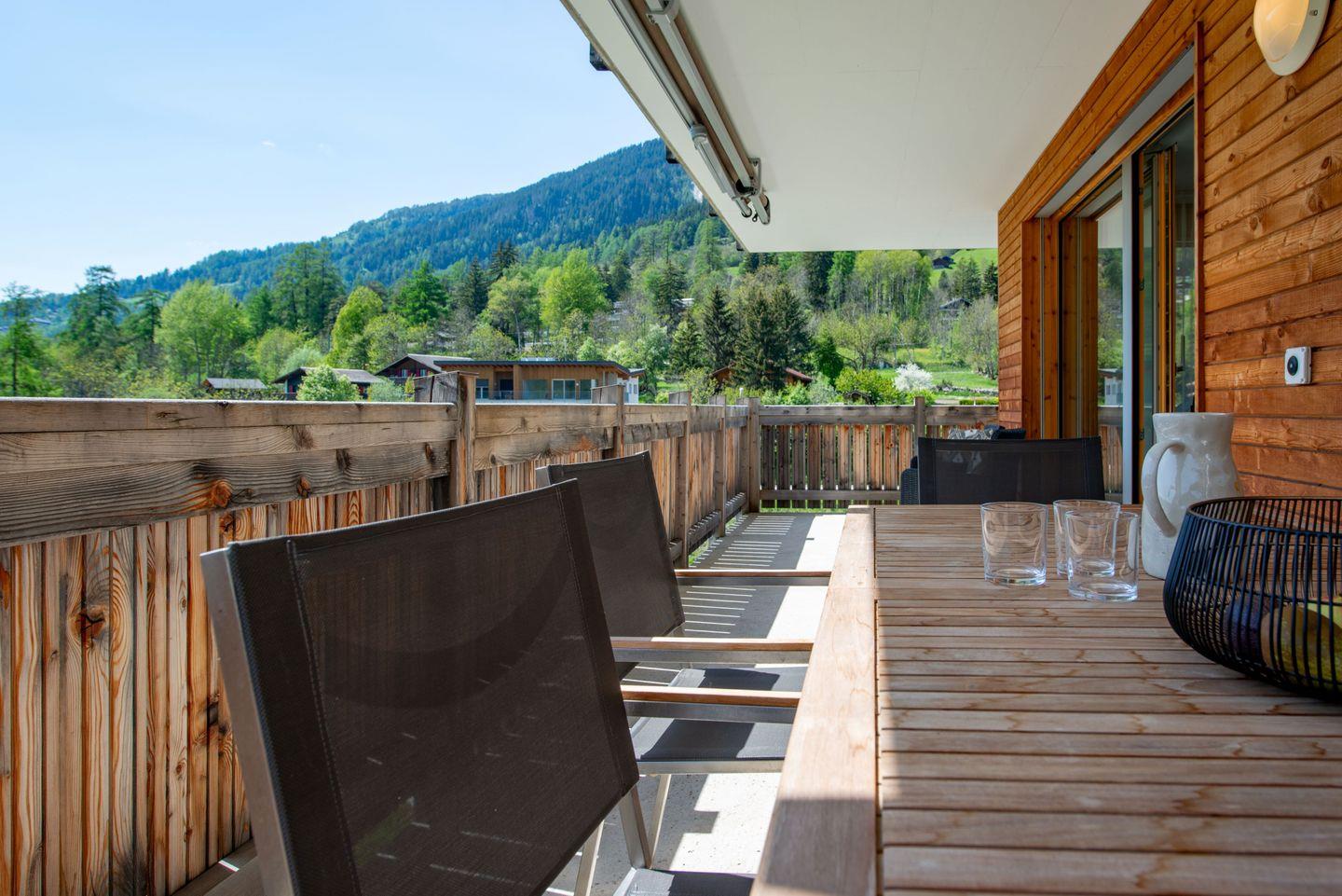 Entspannen Sie in der privaten 4-Personen-Sauna oder erfrischen Sie sich im Gemeinschaftsschwimmteich (im Winter geschlossen). Der großzügige Balkon lädt zum Verweilen ein – mit Grill, Esstisch und Liegemöglichkeiten – perfekt für Sonnenuntergänge mit Blick ins Rhonetal.