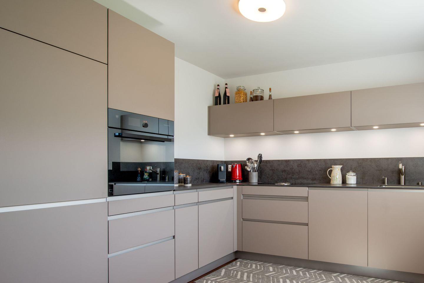 Genießen Sie die hochwertige Ausstattung: Zwei stilvoll eingerichtete Schlafzimmer mit viel Stauraum, ein komfortables Wohnzimmer mit Sofa, Sessel und Esstisch sowie zwei elegante Badezimmer mit Massage- und Regenduschen. Die voll ausgestattete Küche mit Induktionsherd, Geschirrspüler und großem Kühlschrank lässt keine Wünsche offen.