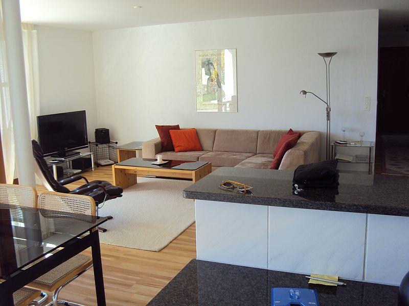 3.5 room apartment, 3 star superior, 84qm (4 beds) in a family house in a quiet south-facing slope (below the road) with beautiful, unobstructed panoramic view, good as new, modern and very sunny. Covered patio with plenty of swing and garage. Good bus service (bus stop 50m away). All rooms are sunny and have a breathtaking view of the valley and the mountains. This apartment is really something special and provides an exceptional holiday experience. Internet available.