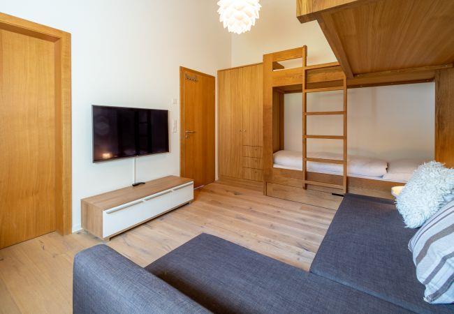 Pets and smoking are not allowed in this apartment. Wi-Fi and digital TV are available free of charge. A parking space in the underground garage is reserved for you. A washing machine, tumble dryer, and drying room are located in the basement. There is also a secure bike and ski room in the cellar. The beds will be freshly made before your arrival, and hand, shower, and kitchen towels are provided for your use. Laundry and final cleaning are included in the total price.