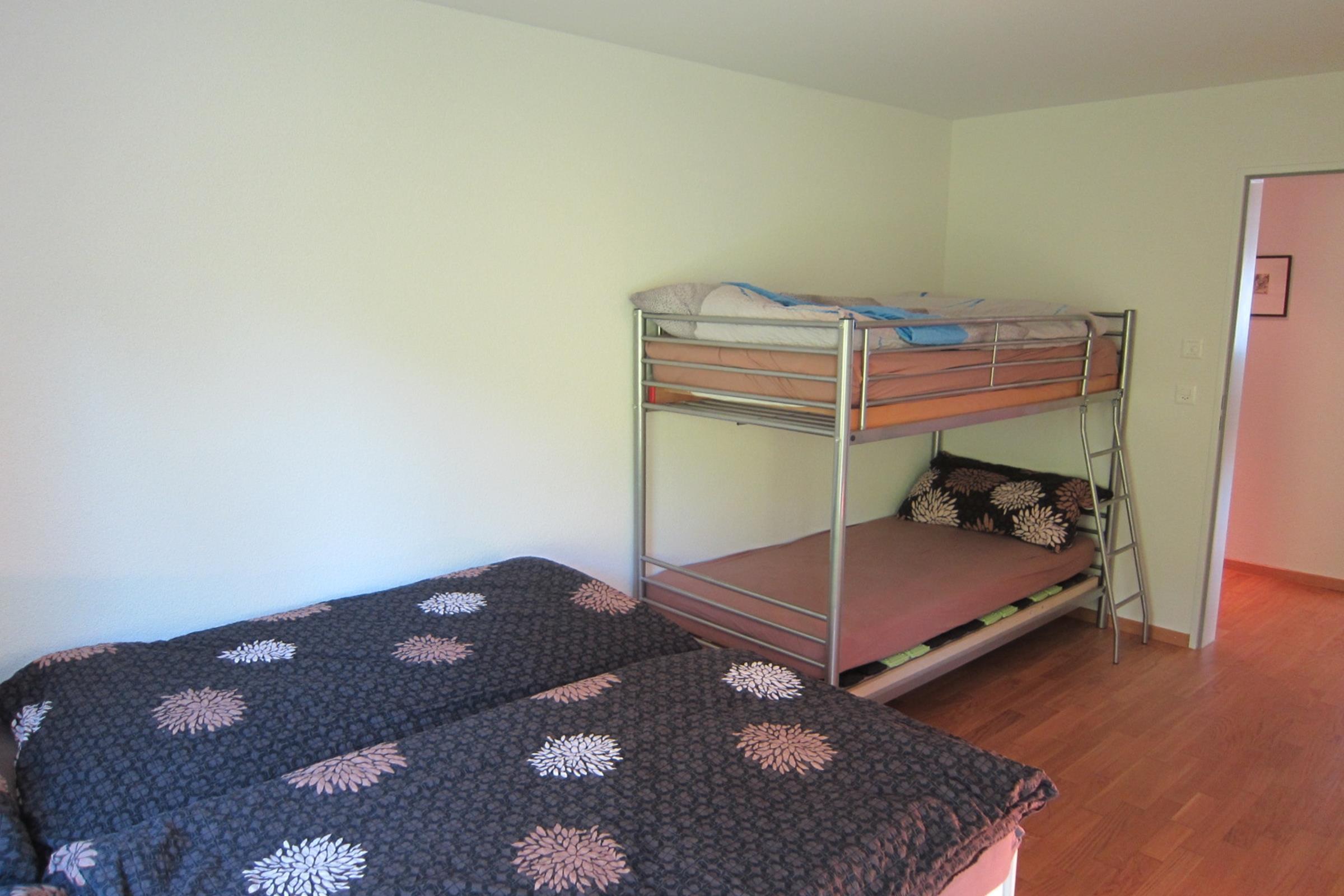The apartment has two bedrooms, one (parents room) with double bed and one (children's room) with bunk bed and single bed and also a pull-out bed a bathroom with shower/toilet plus a sparate toilet a spacious living room with sofa, TV and music system as well as dining table an open and modern kitchen Interior & technical equipment