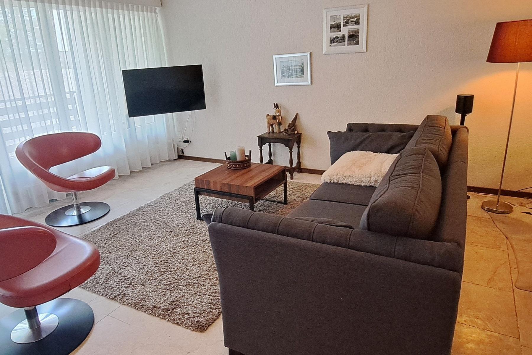 The bright holiday apartment with well thought-out, modern furnishings hasa spacious, well-separated bedroom with its own balcony and wonderful views of the natural surroundingsan open, fully equipped kitchen with practical dining table for the whole familya cosy living area with sofa and foldaway wardrobe bed - also with access to a balconya bathroom with shower and bathtubone garage space