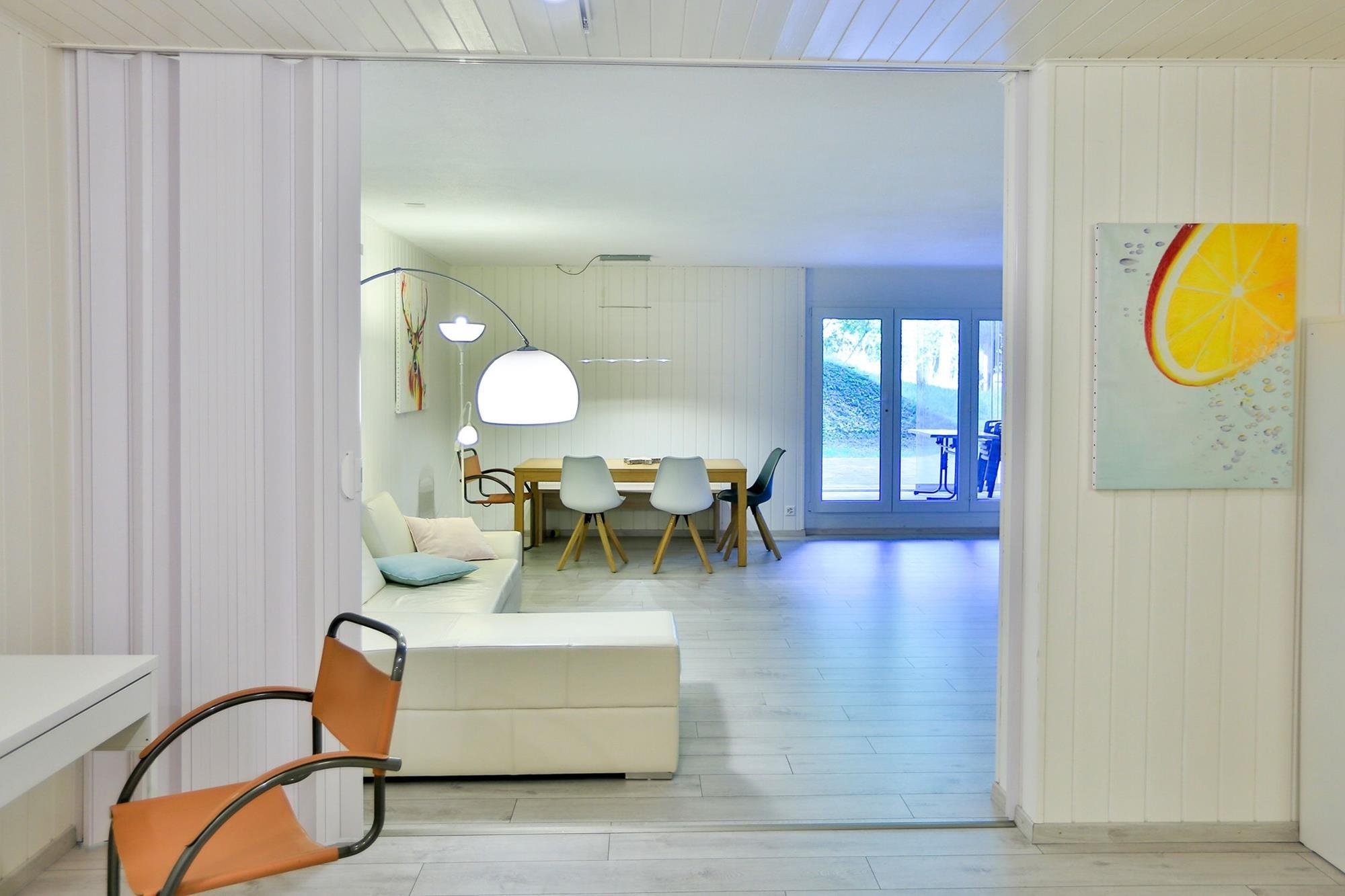 The apartment is very large, well maintained and furnished. WiFi is available free of charge. A cable TV with HD quality incl. digital radio, as well as DVD player is available. The kitchen is equipped with refrigerator, oven, stove, dishwasher as well as coffee machine (Delizio), microwave, toaster and kettle.
