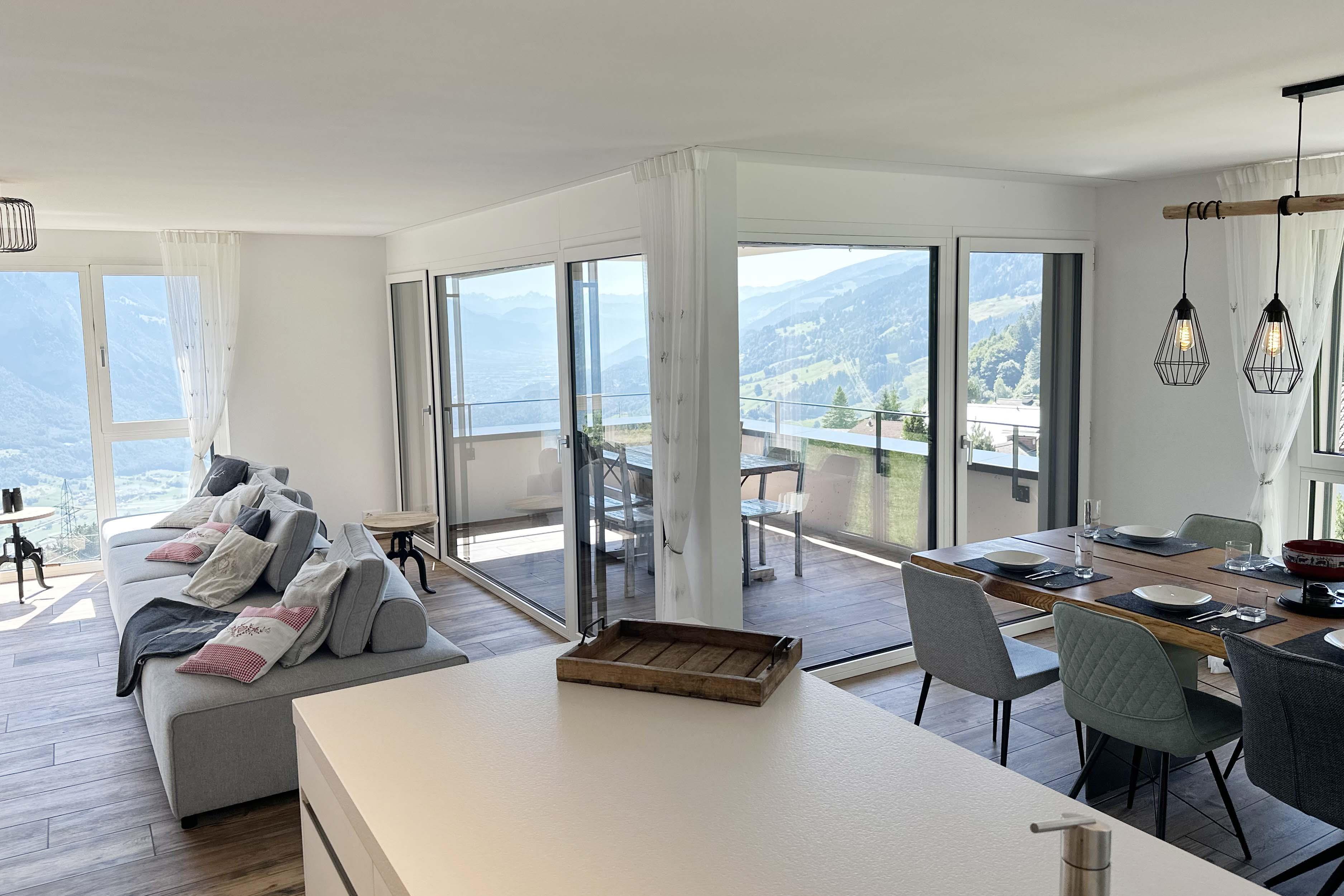 The holiday apartment "Bi dä Susi" is located in the center of Flumserberg Tannenheim, 5 minutes walk from the front door to the Prodalp-Express valley station and offers a beautiful view of the mountains of Sarganserland. In the same building you will find the unique restaurant mätz dine.