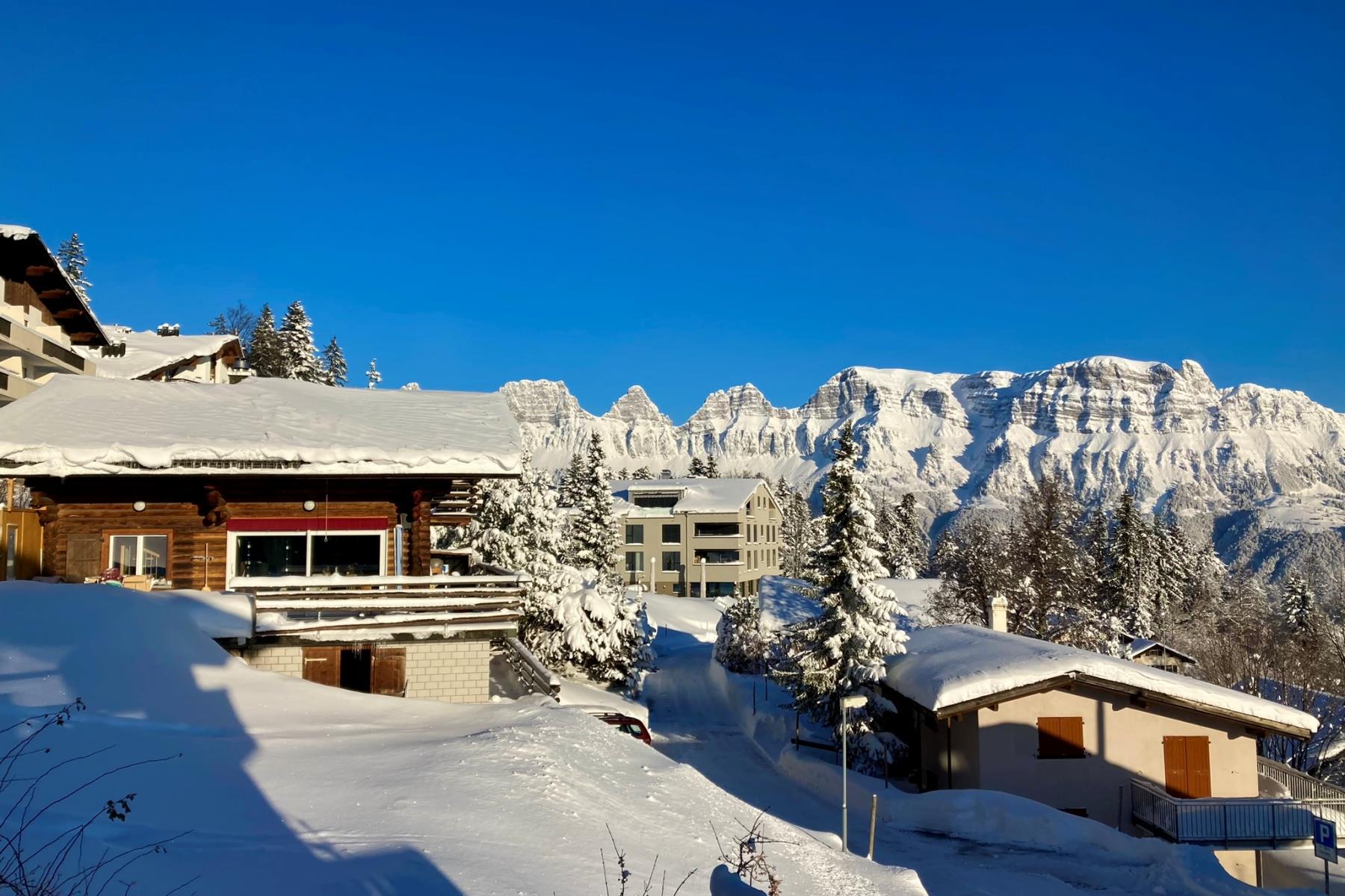 This stylishly furnished 3.5-room holiday apartment is situated in a prime location at Flumserberg Tannenheim - just a few steps from the Mätz Dine restaurant and the valley station of the Prodalp Express. It offers the perfect combination of comfort, views, and functionality - ideal for families or friends looking to enjoy a relaxing stay in the mountains. Total size of the apartment