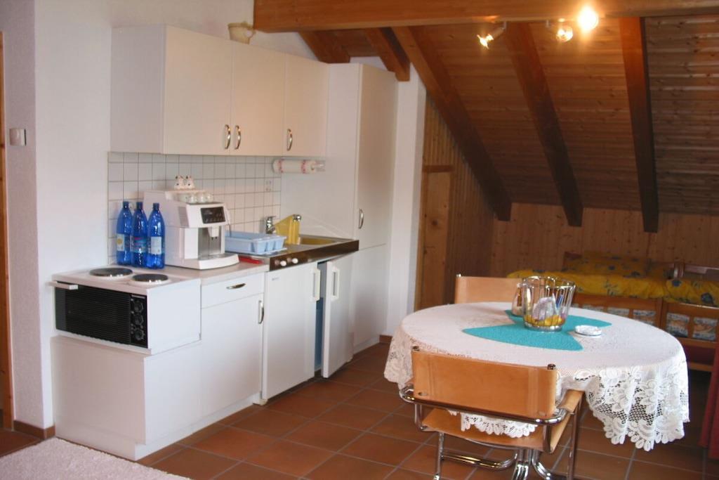 The holiday apartment is located in a two-family house. The 1.5-room apartment (studio) with 2 beds offers panoramic views of the Churfirsten, Alvier Range, and Sarganserland. The Prodalp Express is 100 meters away, which takes you to the snow-sure Flumserberg ski area. Parking in front of the house and Wi-Fi are free. The price includes admission tickets to the Flumserberg public swimming pool and shared use of the ski and bike storage room. We look forward to your visit. The price includes free admission to the Flumserberg indoor swimming pool and parking.