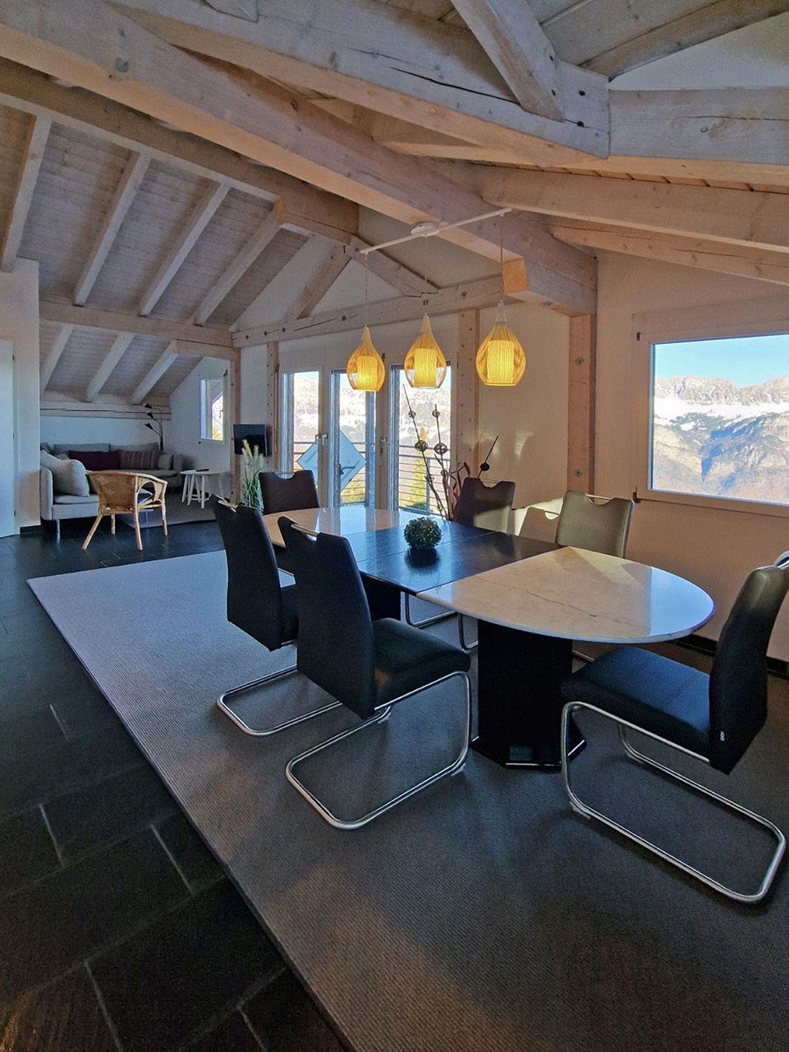 Cosy, homely flat with Swedish stove. 1 double room, 1 room with 2 beds plus an extra bed, gallery with 4 sleeping possibilities (mattress dormitory, bring your own sleeping bag and pillowcase). Washing machine available. The kitchen is fully equipped. On the ground floor there is a box with fondue crockery and raclette oven. Direct access to the Tannenheim valley run on a 5-minute walk. You don't need a car for the whole week. Unrivalled view of the Churfirsten and the Bündner Herrschaft.
