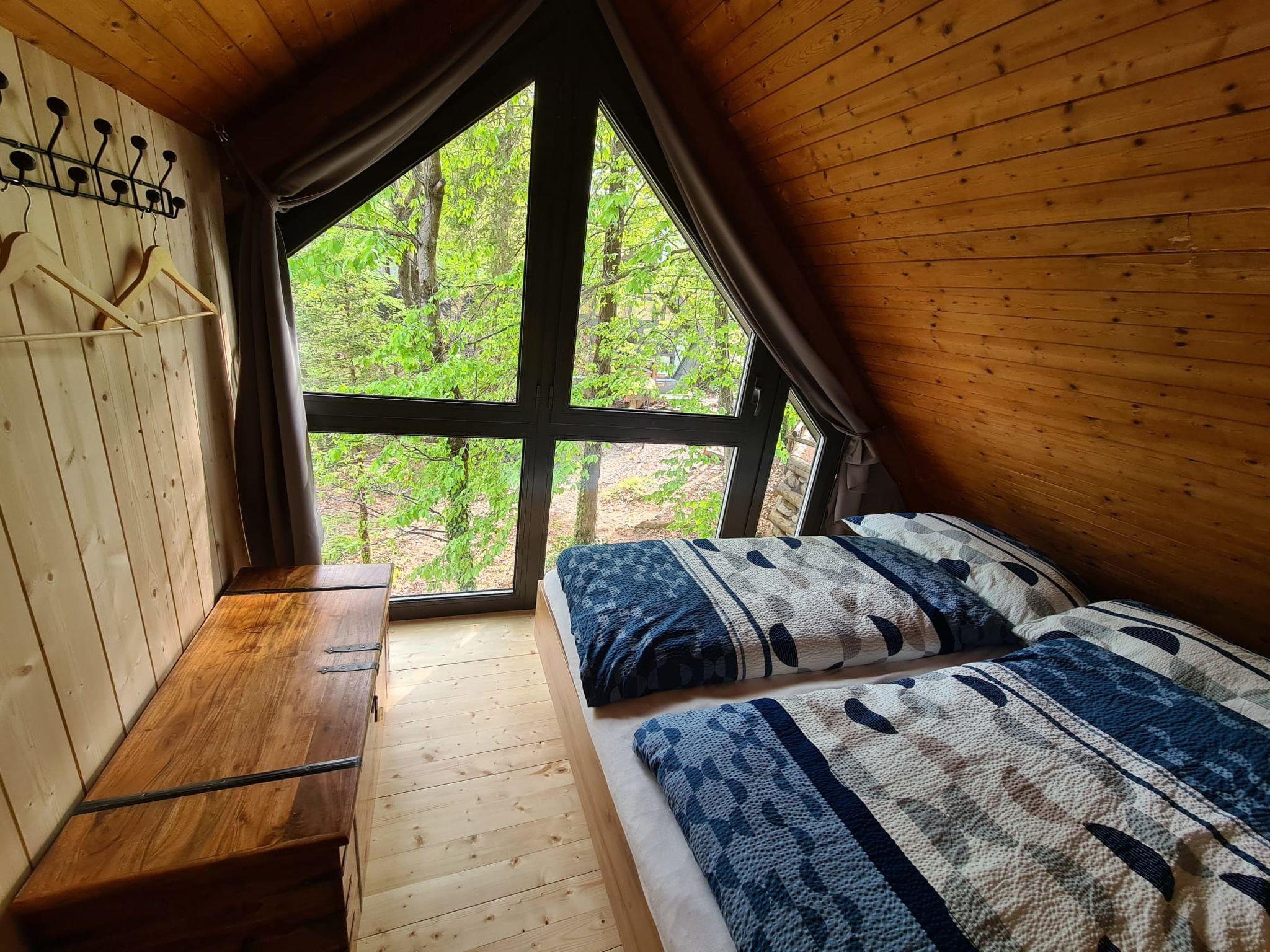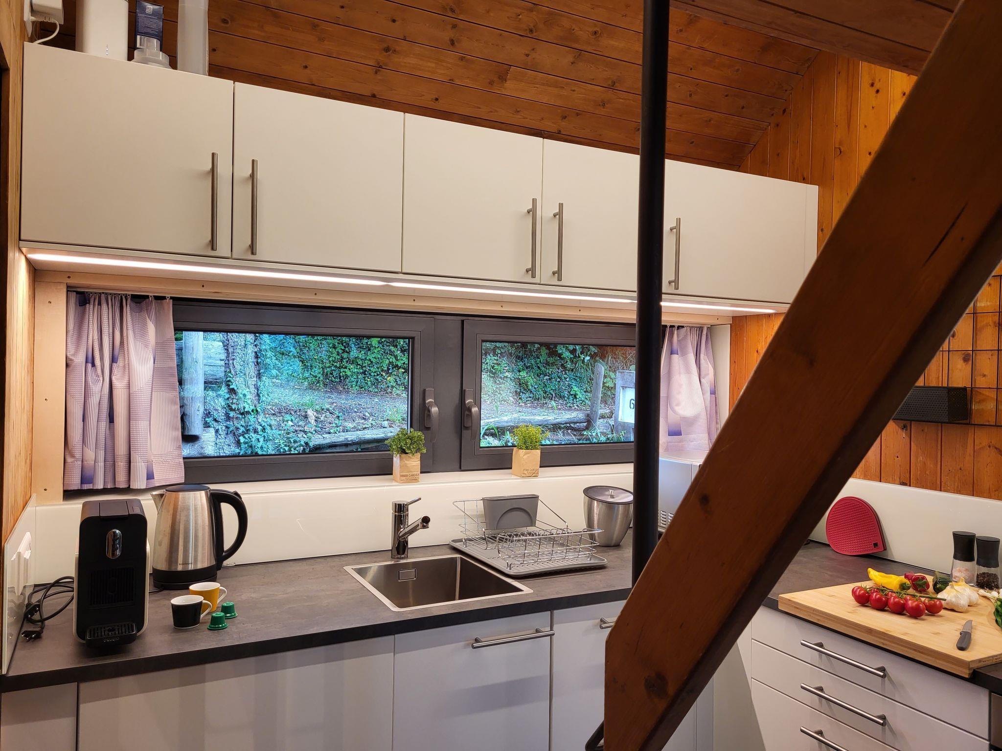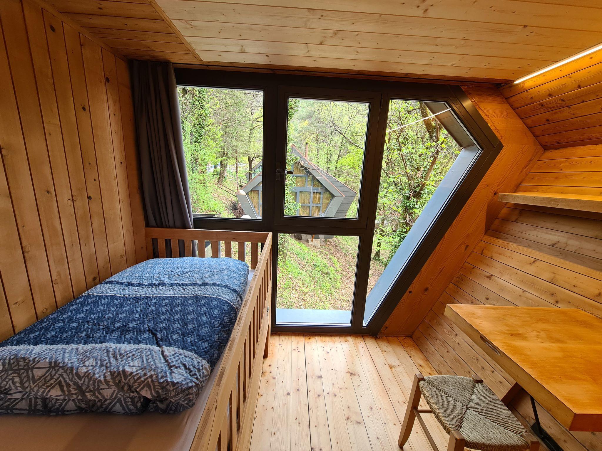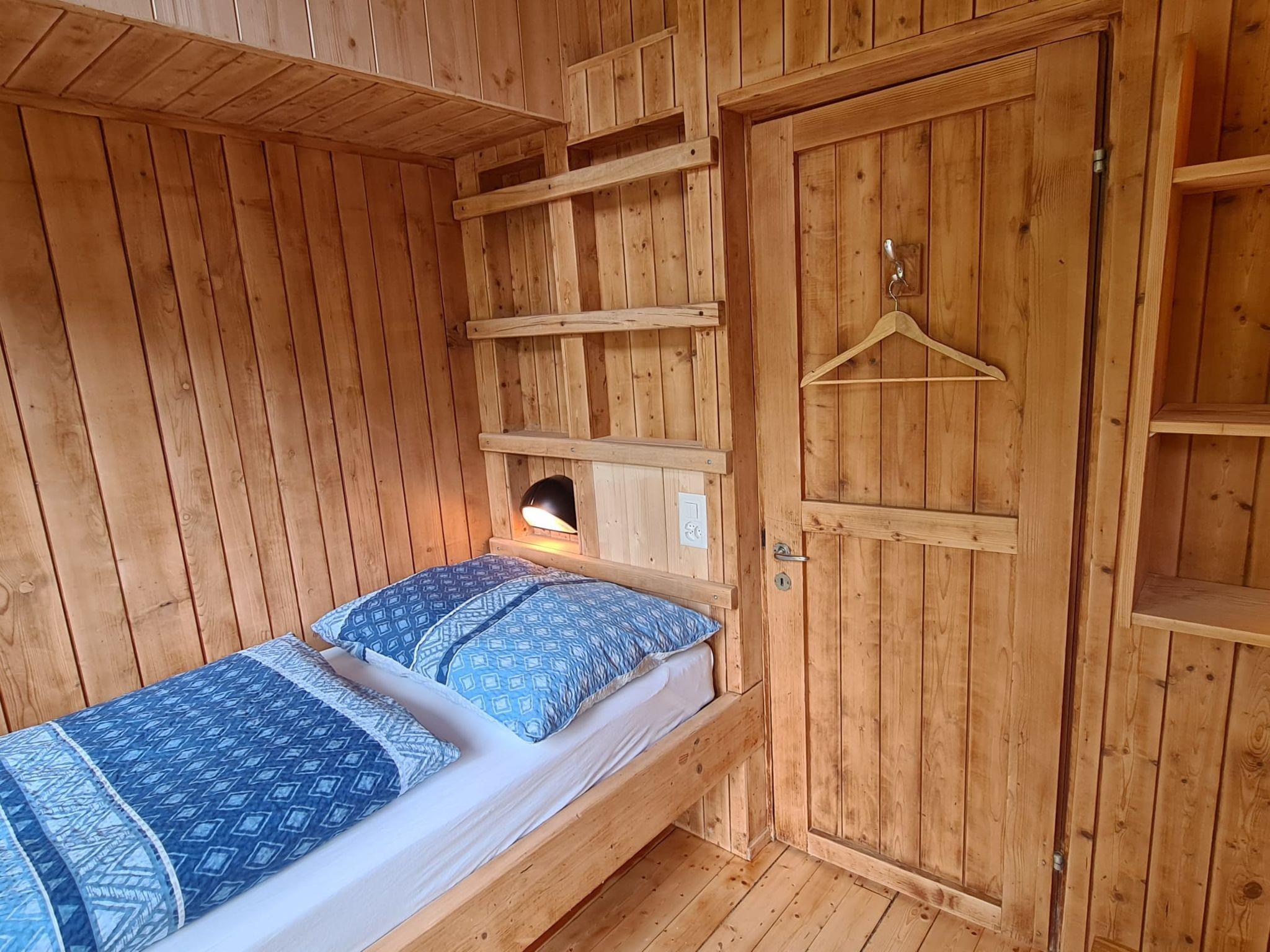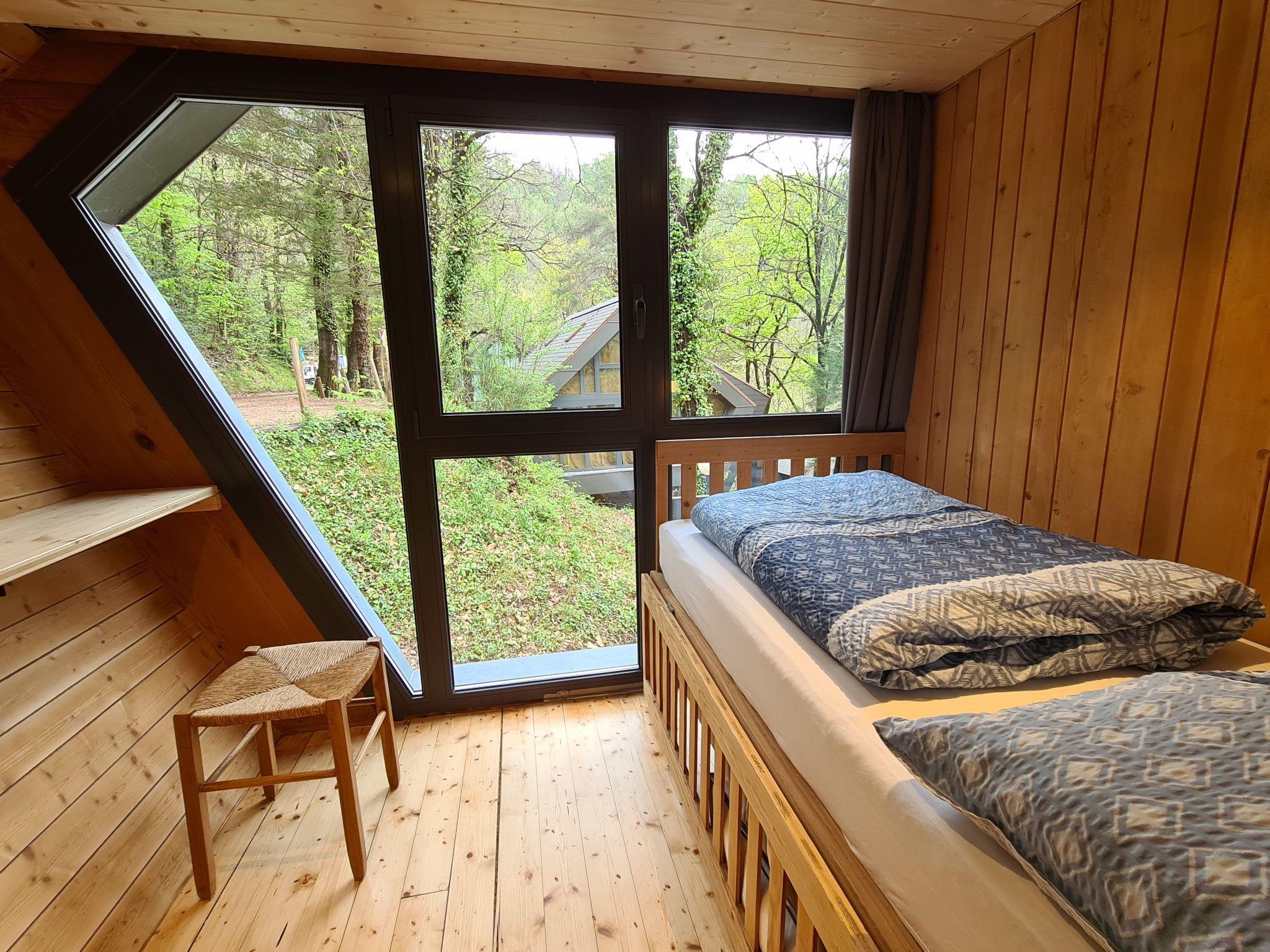 "Bosco della Bella 6", 7-room bungalow on 2 levels. Partly with sloping ceilings, renovated in 2023, beautiful and wooden furniture furnishings: open living/dining room. Exit to the balcony. 1 small room with 1 bed (90 cm, length 200 cm). 1 small room with 1 bed (90 cm, length 200 cm). 1 small room with 1 bed (90 cm, length 200 cm). 1 small room with 1 bed (90 cm, length 200 cm). Small, open kitchen (dishwasher, 4 induction hot plates, toaster, kettle, microwave, electric coffee machine, Capsules for coffee machine (Delizio mitbringen) extra). Shower/WC, sep. WC. Electric heating, boiler. Upper floor: (steep stair) open gallery with sloping ceilings with cable TV and flat screen. 1 double bedroom with sloping ceilings with 1 double bed (1 x 160 cm, length 200 cm). 1 room with sloping ceilings with 2 beds (90 cm, length 200 cm). Wooden floors. Balcony, south facing position and, east facing position. View of the valley and the forest. Facilities: baby cot for up to 2 year olds (extra). Internet (WiFi, free). Parking at the house. Please note: suitable for families. Non-smoking house. NL-00006898