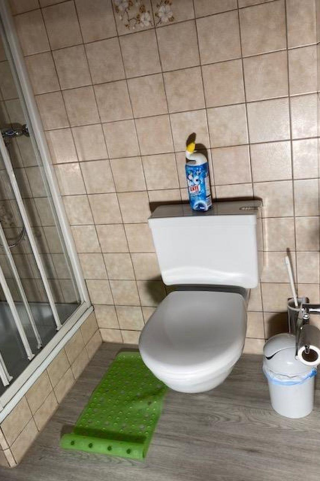 Studio (1 Wohnraum mit Kochnische, 2 Betten, 1 Esstisch mit 4 Stühlen, 2 Sessel, 1 Schrank, TV-Radio) mit Sonnenterrasse und Rasenplatz. Parkplatz vorhanden. Geräumige Dusche/WC/Lavabo / Korridor /Kellerraum.