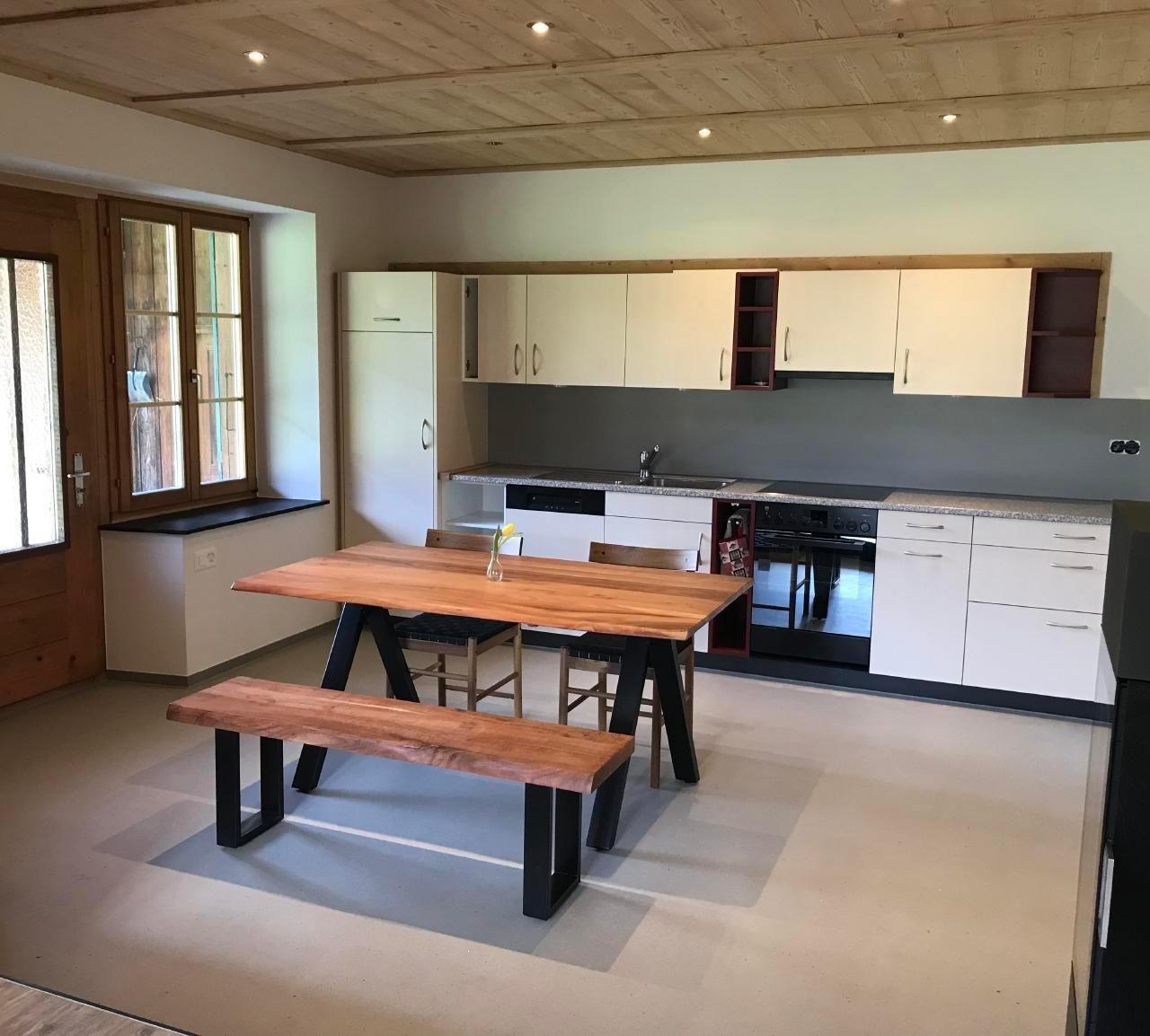 The artfully renovated holiday flat on the ground floor of a farmhouse invites you to relax and unwind. The flat offers generous space and a spacious entrance area for luggage, clothes and shoes. Enjoy a unique mountain view from your own terrace or make yourself comfortable by the fireplace in the evening.