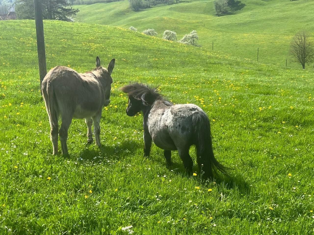 Do you want to experience peace and nature? Welcome to our farm! Surrounded by woods and meadows, our farm lies at the foot of the Weissenstein. Cosy spots in the beautiful park invite you to linger. A visit to the sauna or whirlpool is well worthwhile. Free-roaming rabbits live in the park and many different animals enrich your stay. The Jura heights are ideal for hiking and biking. You can walk through the forest directly from the farm to the Weissenstein in about 1-1.5 hours. The baroque town of Solothurn can be reached by train in 30 minutes (the tunnel will be renovated from March 24). The Sikypark (zoo) is 3 km away. Nearest shopping facilities are 3.5 km away. Car is an advantage. Renovated, bright flat on the 1st floor with dishwasher, new kitchen & bathroom, Delizio coffee machine...The bathroom is accessible via a small corridor, is outside the flat but of course for exclusive use. The marvellous view is waiting for you! Dogs are welcome on request. A warm welcome!