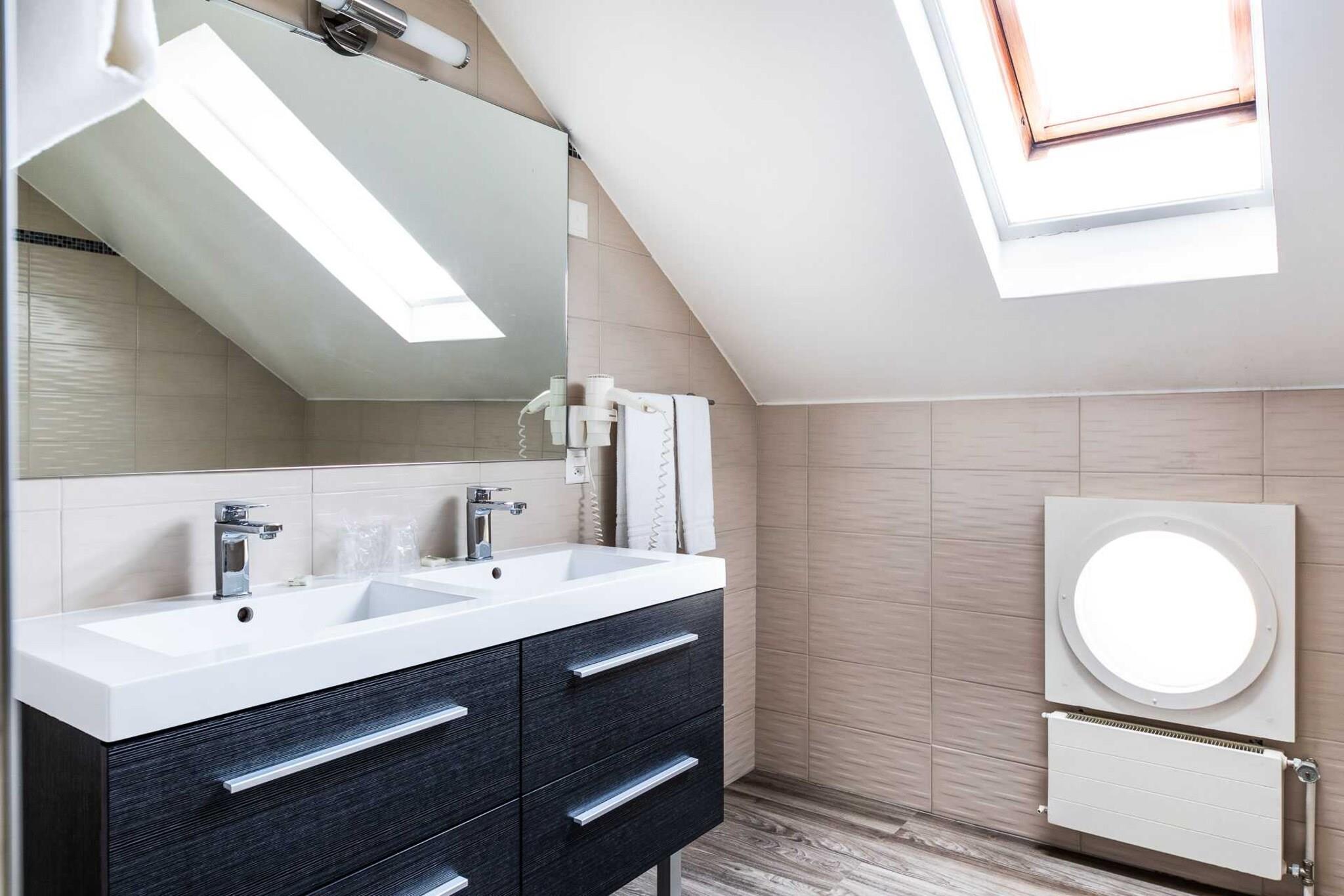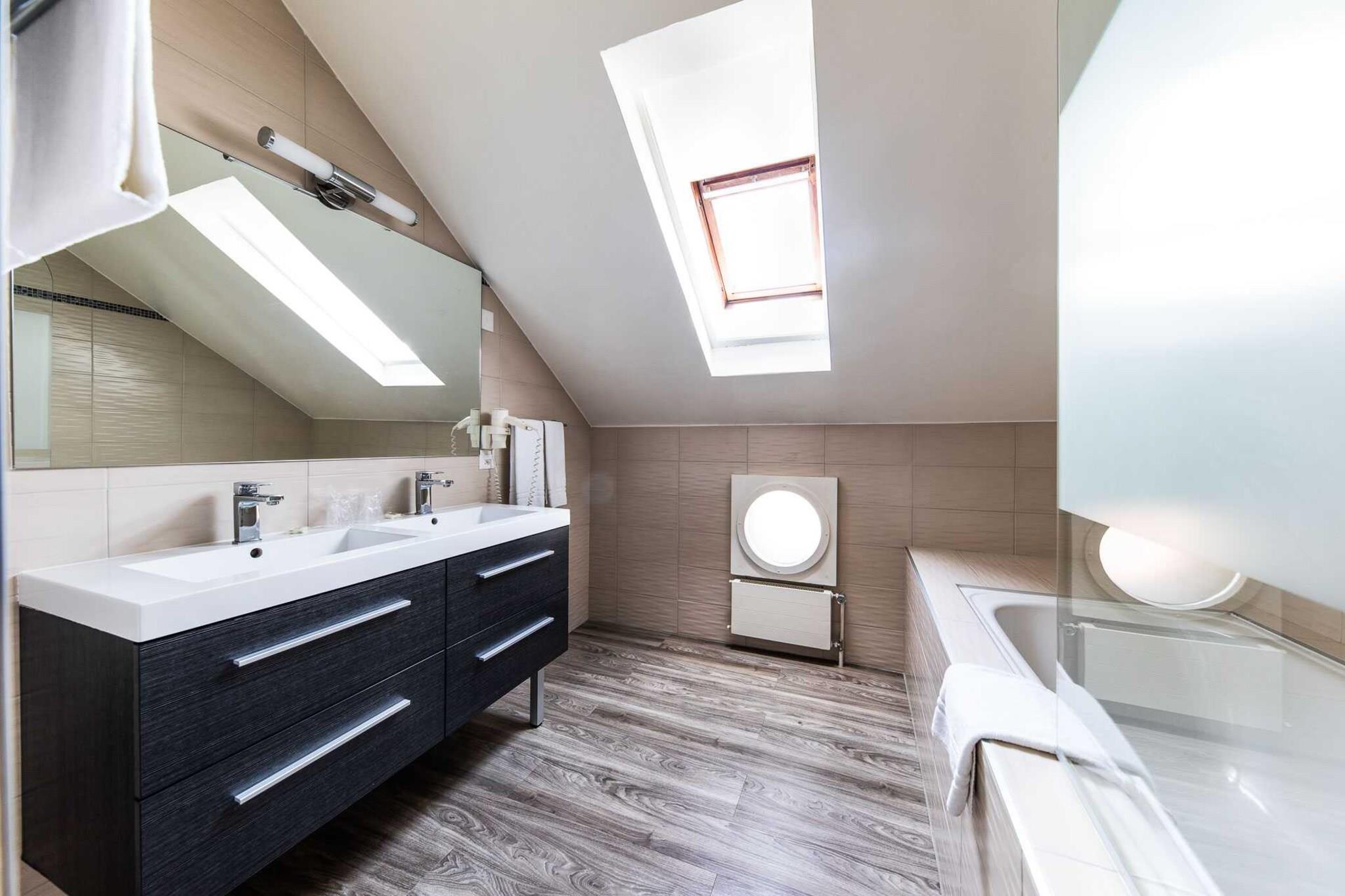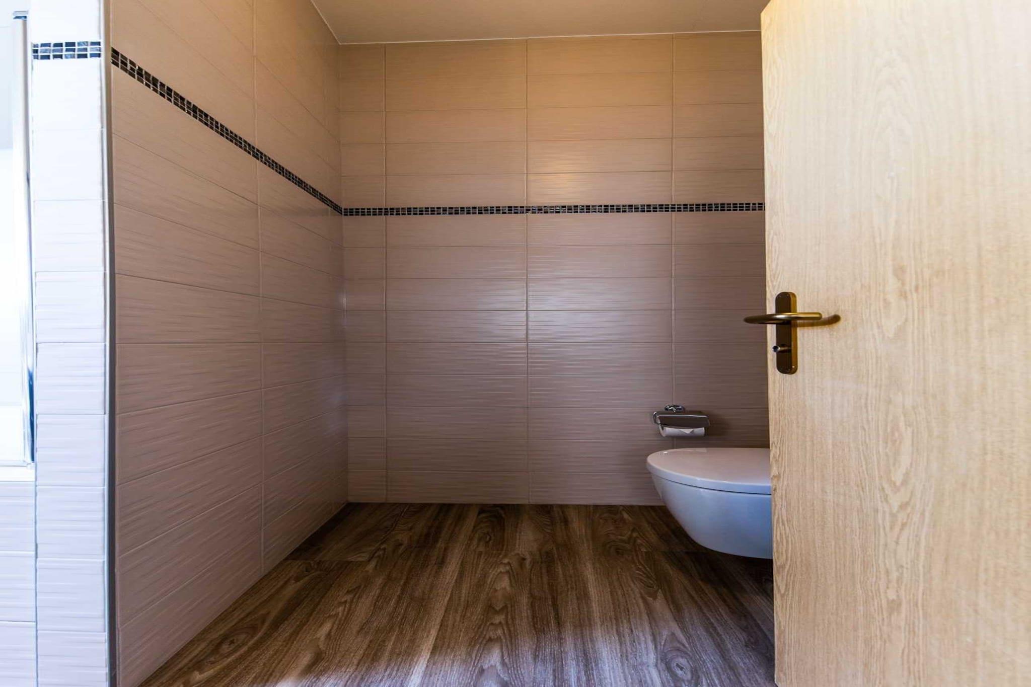 On the 6th floor: (Kitchen(stove, hob, coffee machine, combination microwave, fridge, electric hot plates, dishes and cutlery, Cooking basics, Wine glasses), bedroom(double bed, TV), bathroom(bath tub, toilet, hairdryer, shampoo, body soap, hot water))