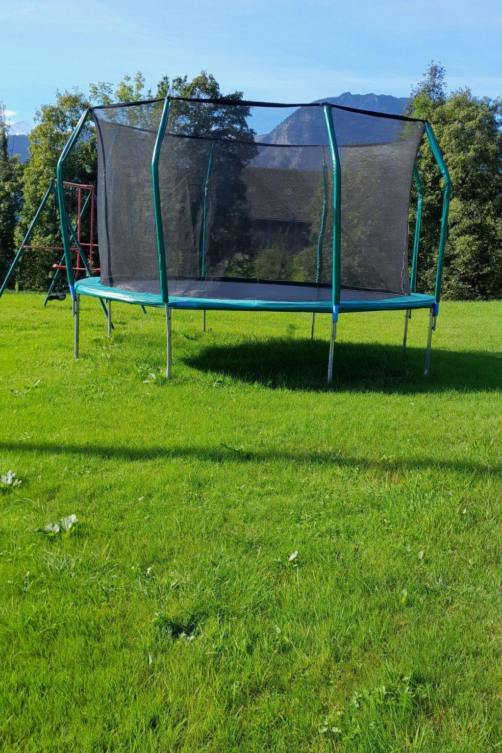A sheltered sunbathing area, table and chairs are also included. Also deckchairs and parasols. The existing barbecue area, trampoline, table tennis table and a children's swing can also be used. The spacious lawn invites you to play ball games.