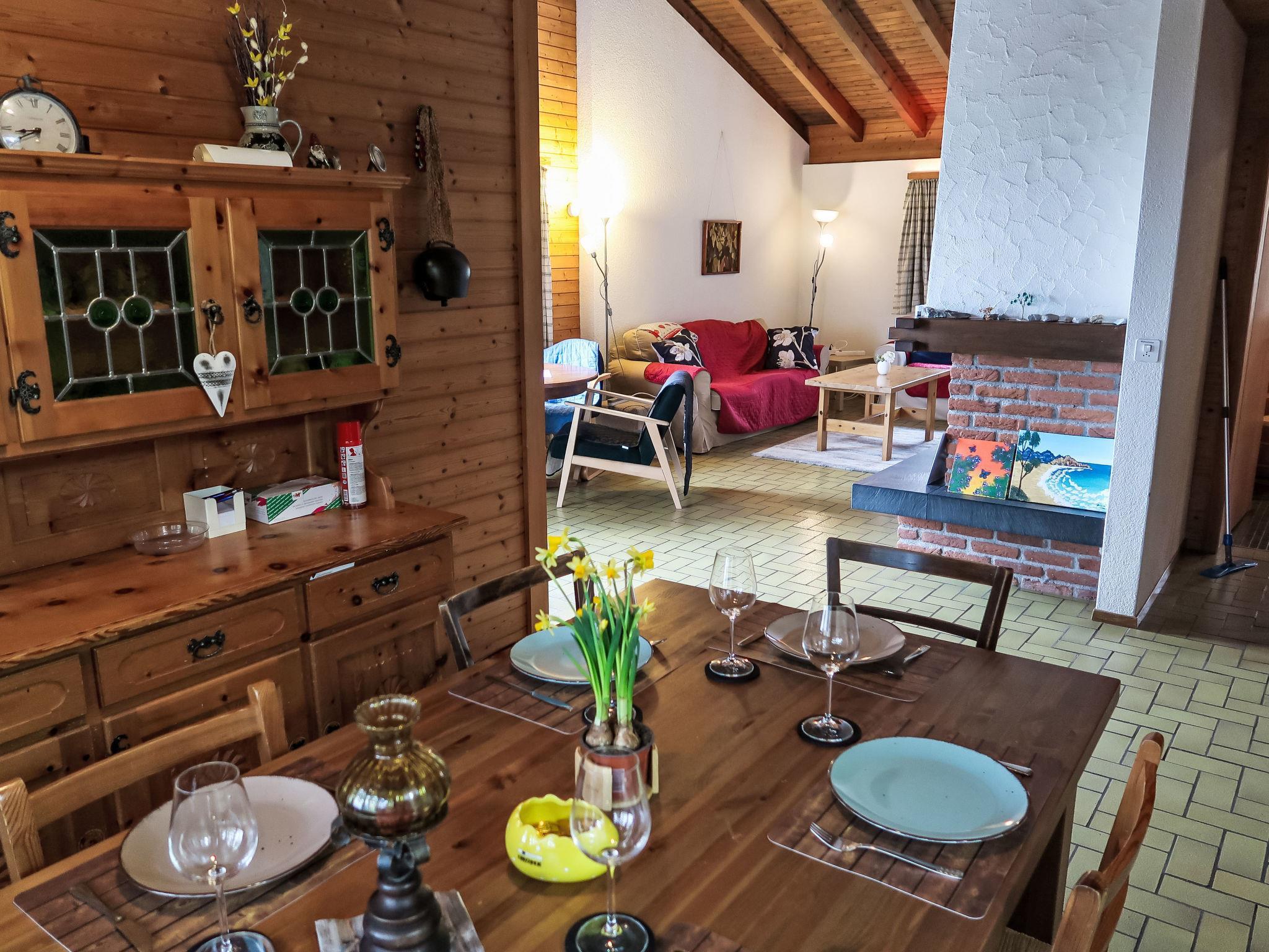 5-room chalet 130 m2 on 2 levels. Simple and cosy furnishings: living/dining room with open-hearth fireplace and cable TV (flat screen), radio and hi-fi system. Exit to the balcony. 1 double bedroom. Kitchen (oven, dishwasher, 4 ceramic glass hob hotplates, toaster, kettle, microwave, electric coffee machine, raclette grill, fondue Set (cheese)). Bath/WC. On the lower ground floor: 2 double bedrooms. 1 small room with 2 beds. Shower/WC. Balcony, patio. Terrace furniture, barbecue (portable), box-room. Beautiful view of the mountains, the valley, the countryside and the resort. Facilities: washing machine, dryer, hair dryer. Internet (WiFi, free). Parking (2 cars) at the house. Please note: non-smokers only. Maximum 3 pets/ dogs allowed.